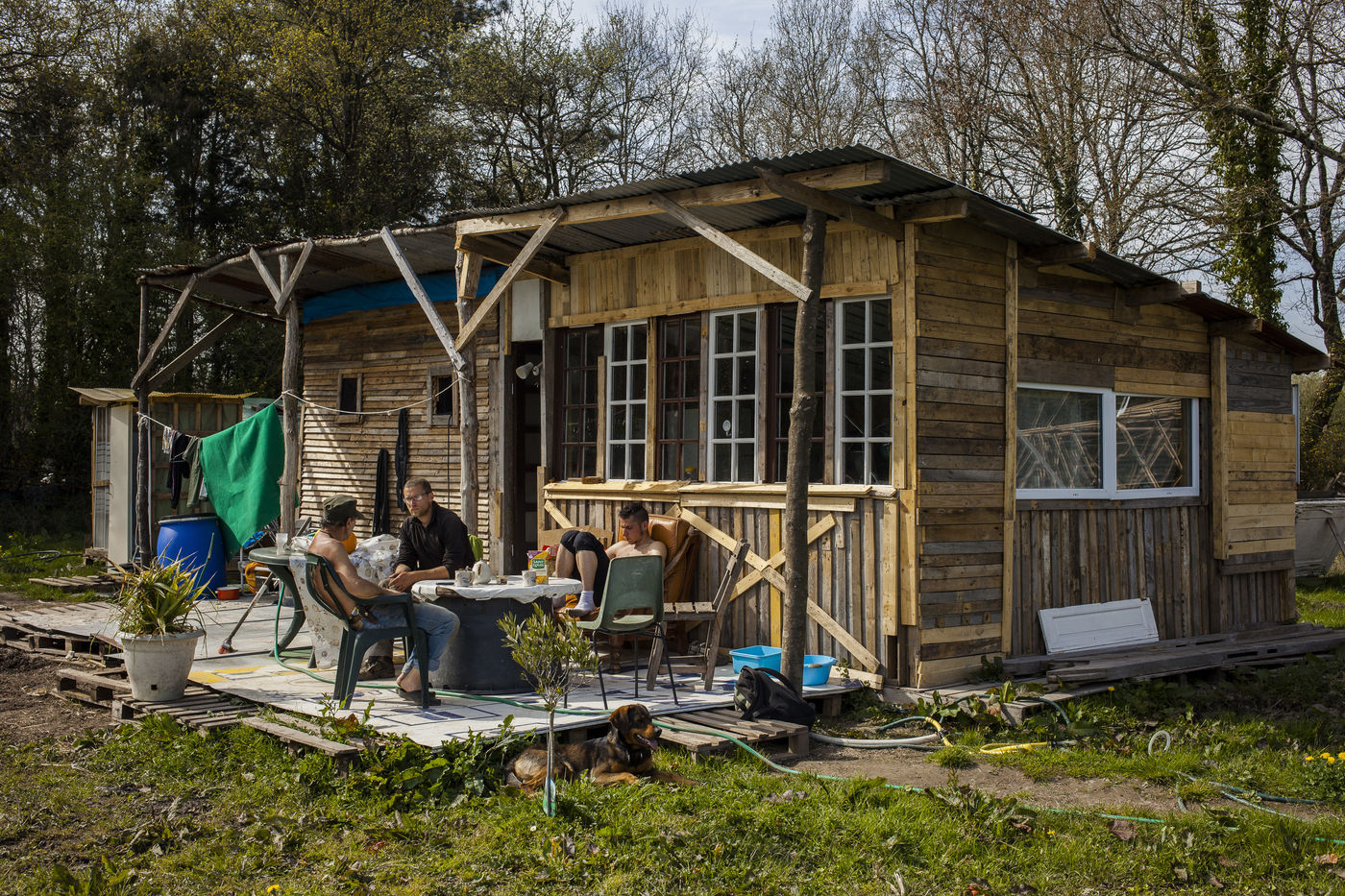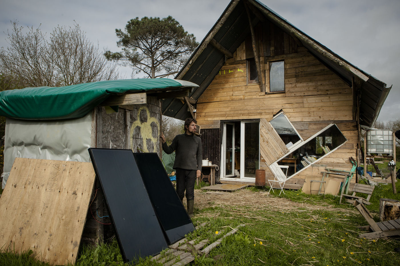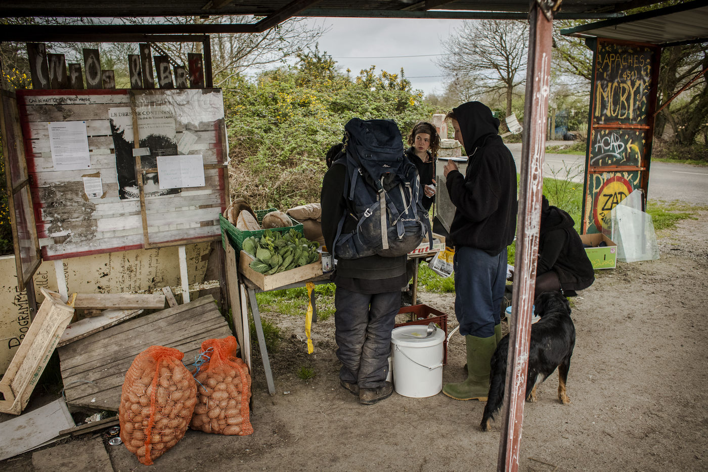 Après plusieurs reportages sur place, j'y suis retourné en Avril pour documenter la vie de certains collectifs, l'organisation politique des occupants et l'avancée des constructions sur place. La construction de cabanes autobaties, autoconstruites, écologistes et alternatives ont encore progressé ; mais surtout le collectif de la Ferme de Bellevue m'a accueilli dans une ferme qu'ils occupent : des ateliers, des vaches, des réunions, des rêves et beaucoup d'amour au programme.