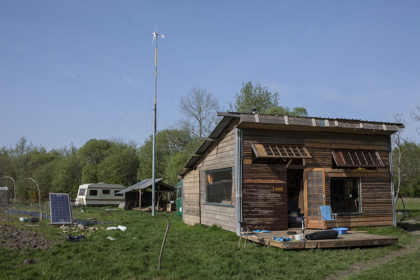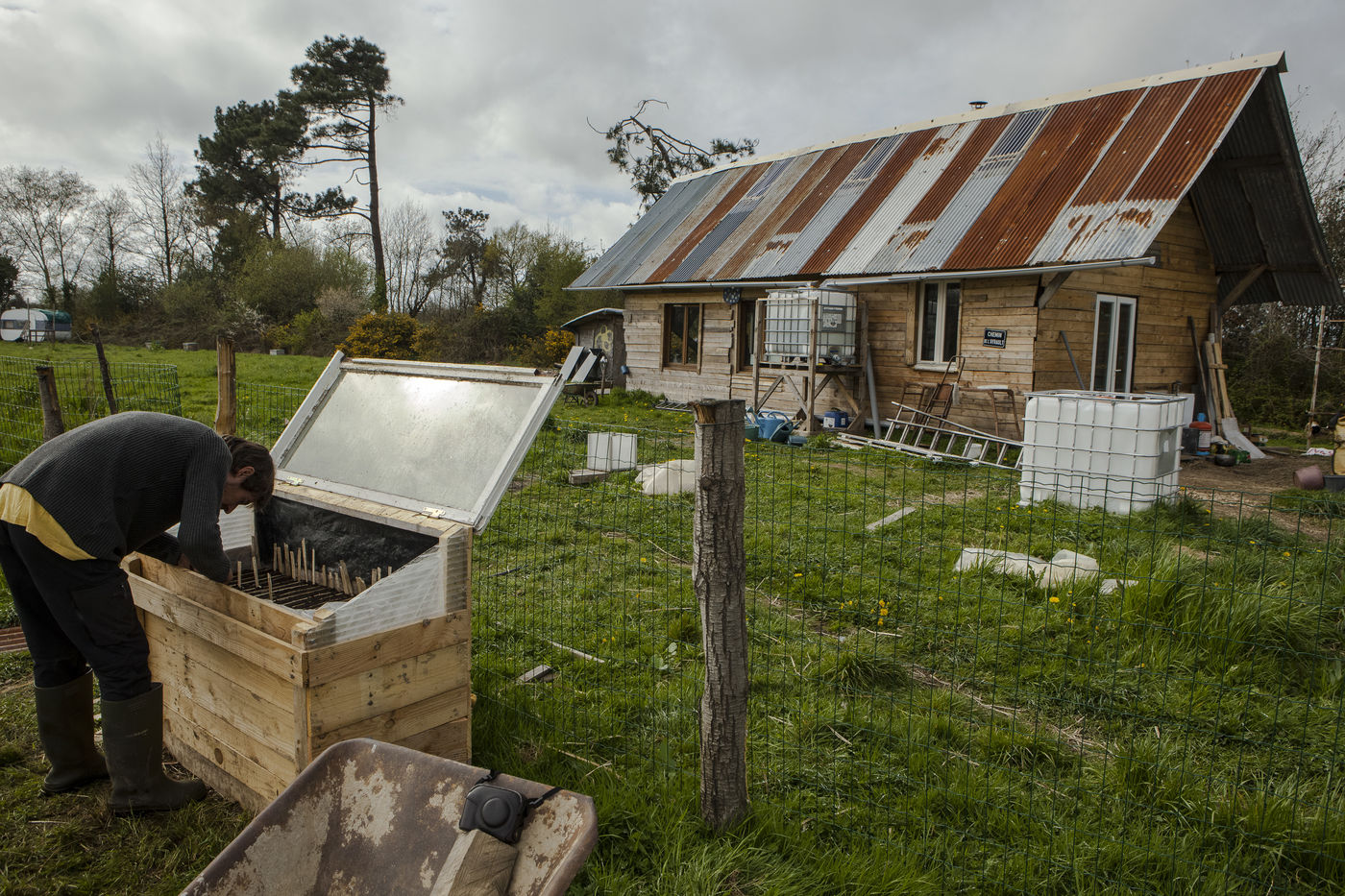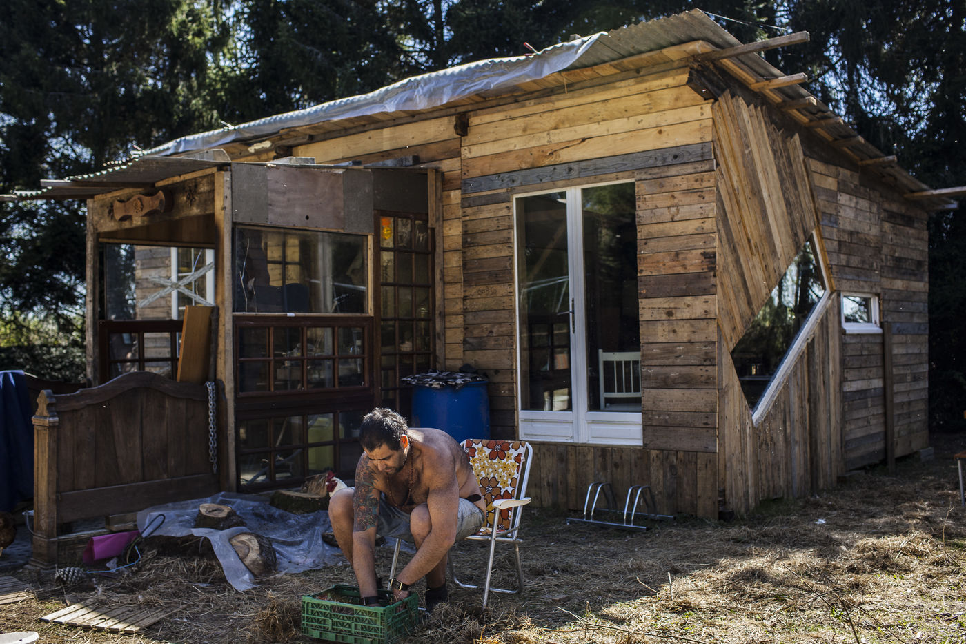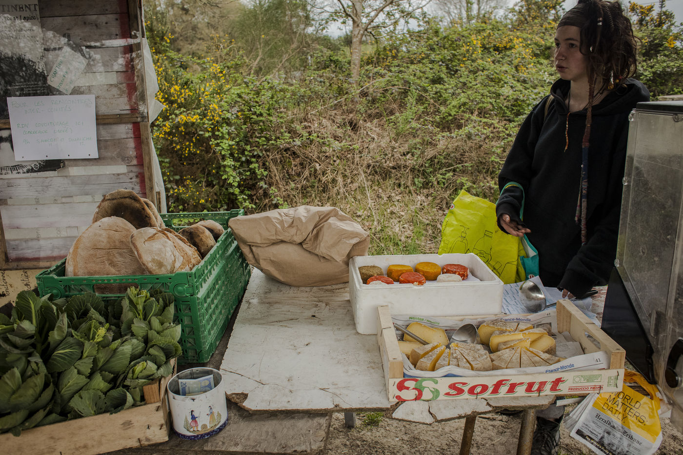 Après plusieurs reportages sur place, j'y suis retourné en Avril pour documenter la vie de certains collectifs, l'organisation politique des occupants et l'avancée des constructions sur place. La construction de cabanes autobaties, autoconstruites, écologistes et alternatives ont encore progressé ; mais surtout le collectif de la Ferme de Bellevue m'a accueilli dans une ferme qu'ils occupent : des ateliers, des vaches, des réunions, des rêves et beaucoup d'amour au programme.
