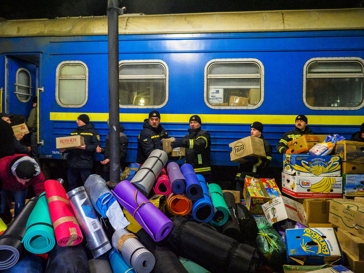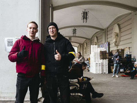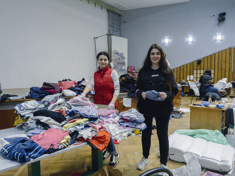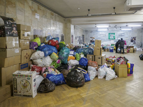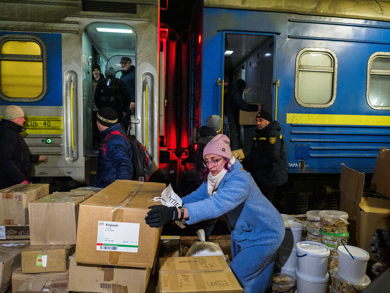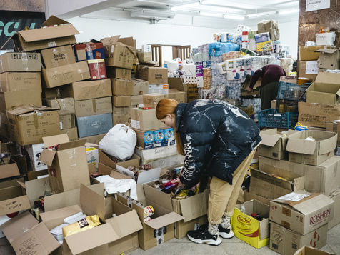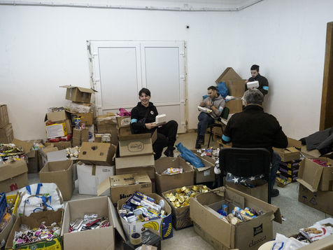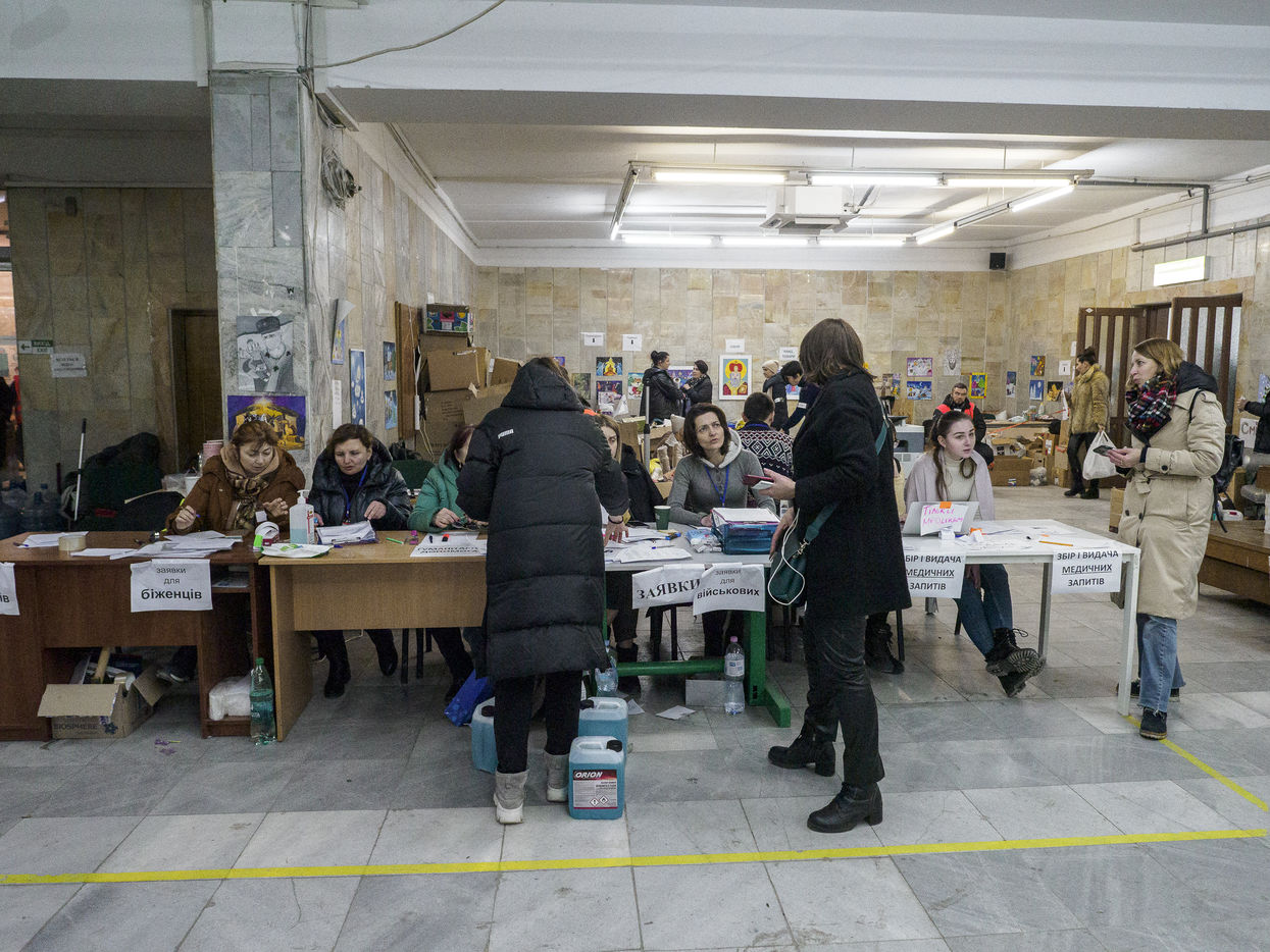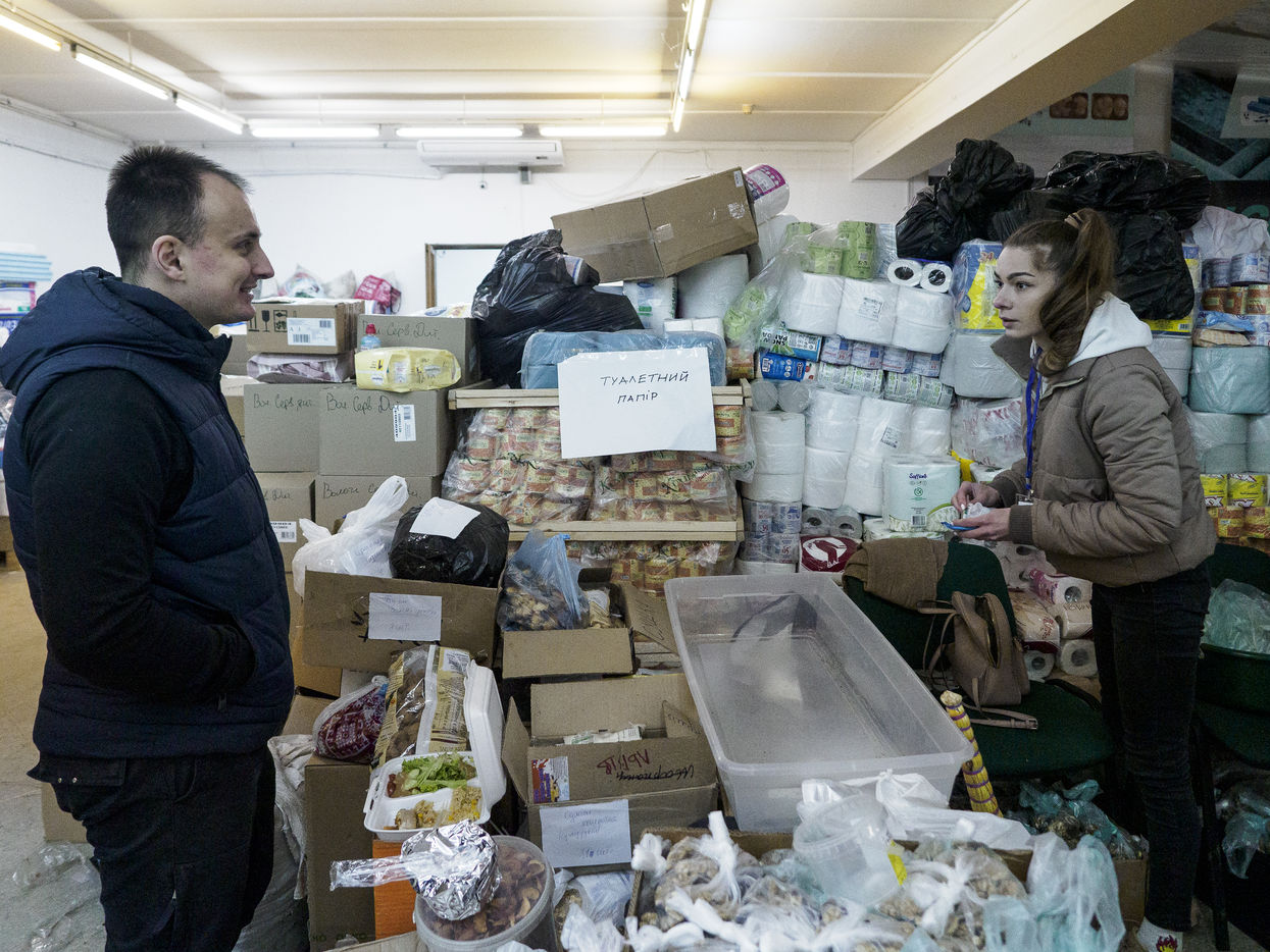 Lviv, Ukraine March 2022. The largest city in Western Ukraine is preparing for war, the whole city is in a state of emergency. The inhabitants begin to hear the sirens of the city to warn of a possible bombardment, even if, for the moment, no bomb has yet pierced the sky of this city of art. In the center, in the old town, the art center was requisitioned by the city to organize a vast humanitarian center run by volunteers. A veritable anthill is active 24 hours a day, every day. : women, men, young people, old people... They started by receiving donations in order to dispatch them to nearby regions, then gradually grew thanks to the influx of European aid to supply the whole country.