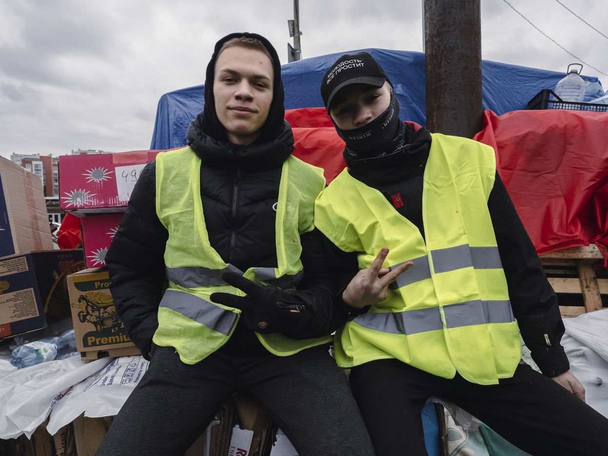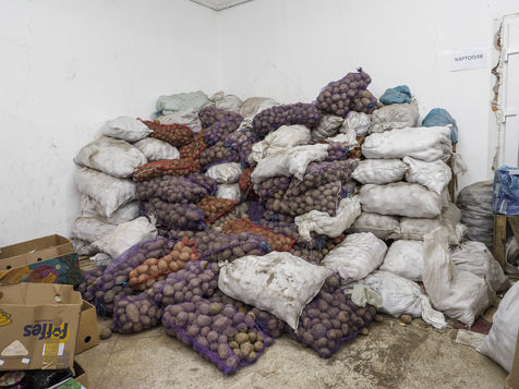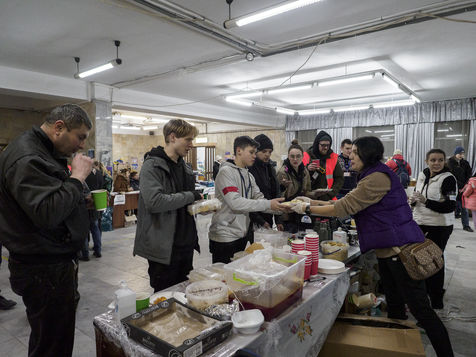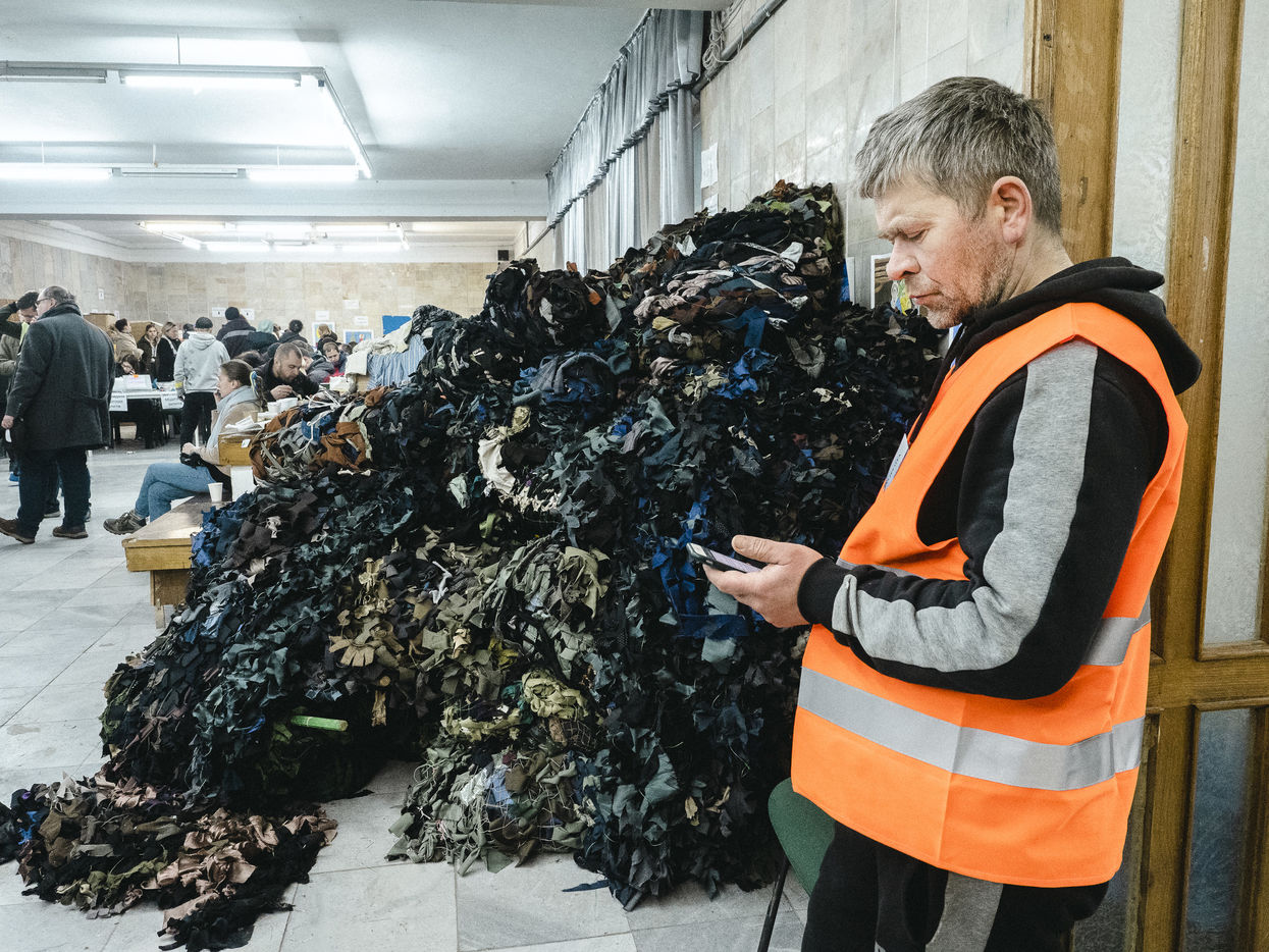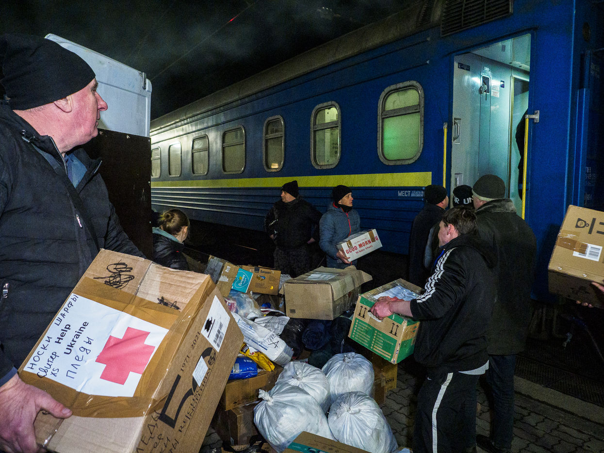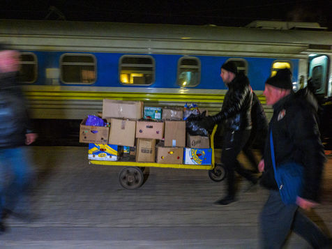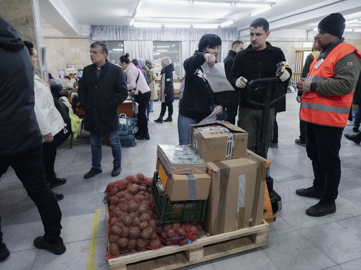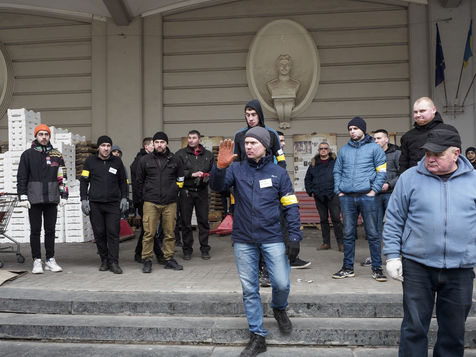 Lviv, Ukraine March 2022. The largest city in Western Ukraine is preparing for war, the whole city is in a state of emergency. The inhabitants begin to hear the sirens of the city to warn of a possible bombardment, even if, for the moment, no bomb has yet pierced the sky of this city of art. In the center, in the old town, the art center was requisitioned by the city to organize a vast humanitarian center run by volunteers. A veritable anthill is active 24 hours a day, every day. : women, men, young people, old people... They started by receiving donations in order to dispatch them to nearby regions, then gradually grew thanks to the influx of European aid to supply the whole country.