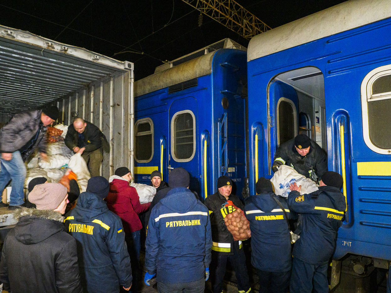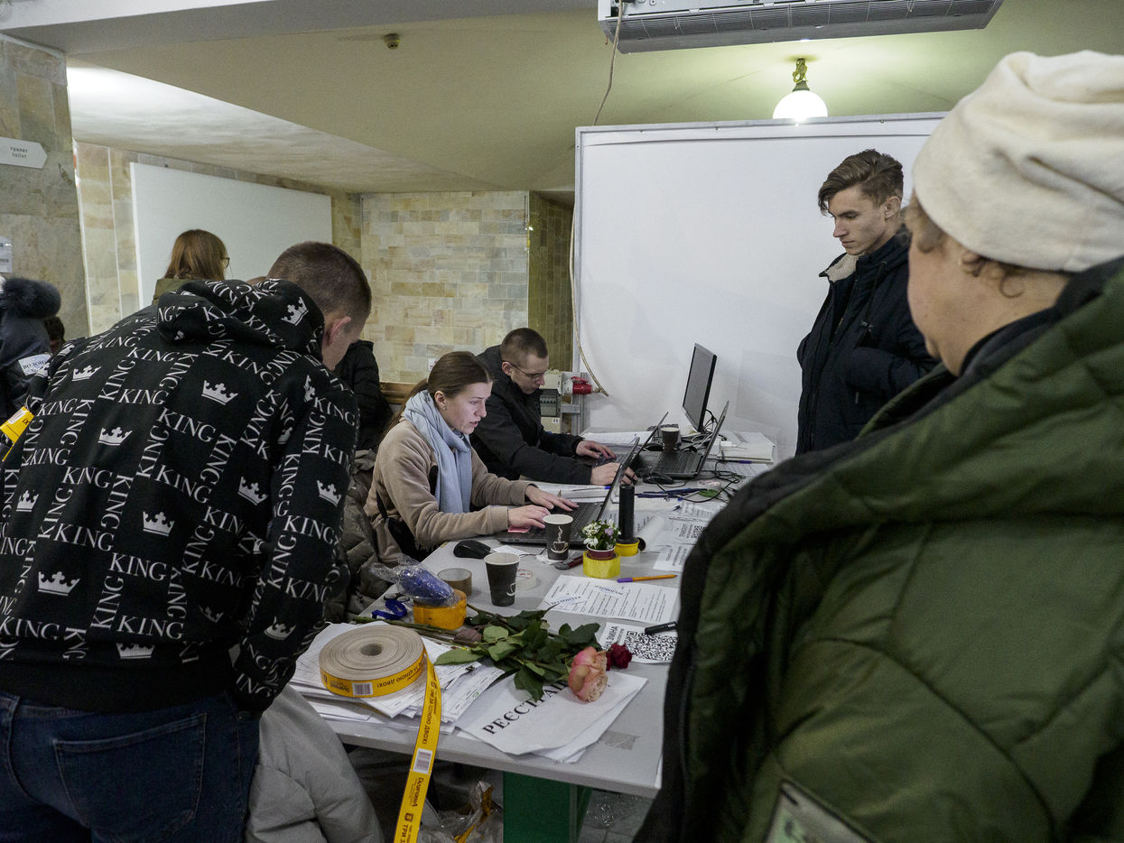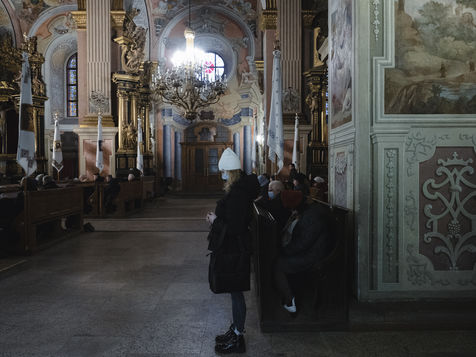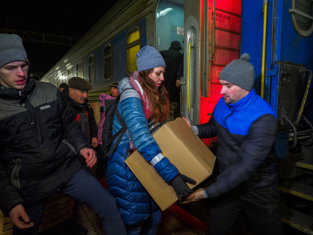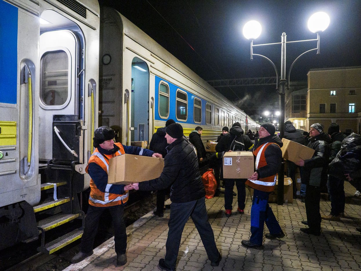 Lviv, Ukraine March 2022. The largest city in Western Ukraine is preparing for war, the whole city is in a state of emergency. The inhabitants begin to hear the sirens of the city to warn of a possible bombardment, even if, for the moment, no bomb has yet pierced the sky of this city of art. In the center, in the old town, the art center was requisitioned by the city to organize a vast humanitarian center run by volunteers. A veritable anthill is active 24 hours a day, every day. : women, men, young people, old people... They started by receiving donations in order to dispatch them to nearby regions, then gradually grew thanks to the influx of European aid to supply the whole country.