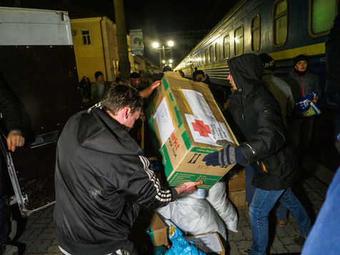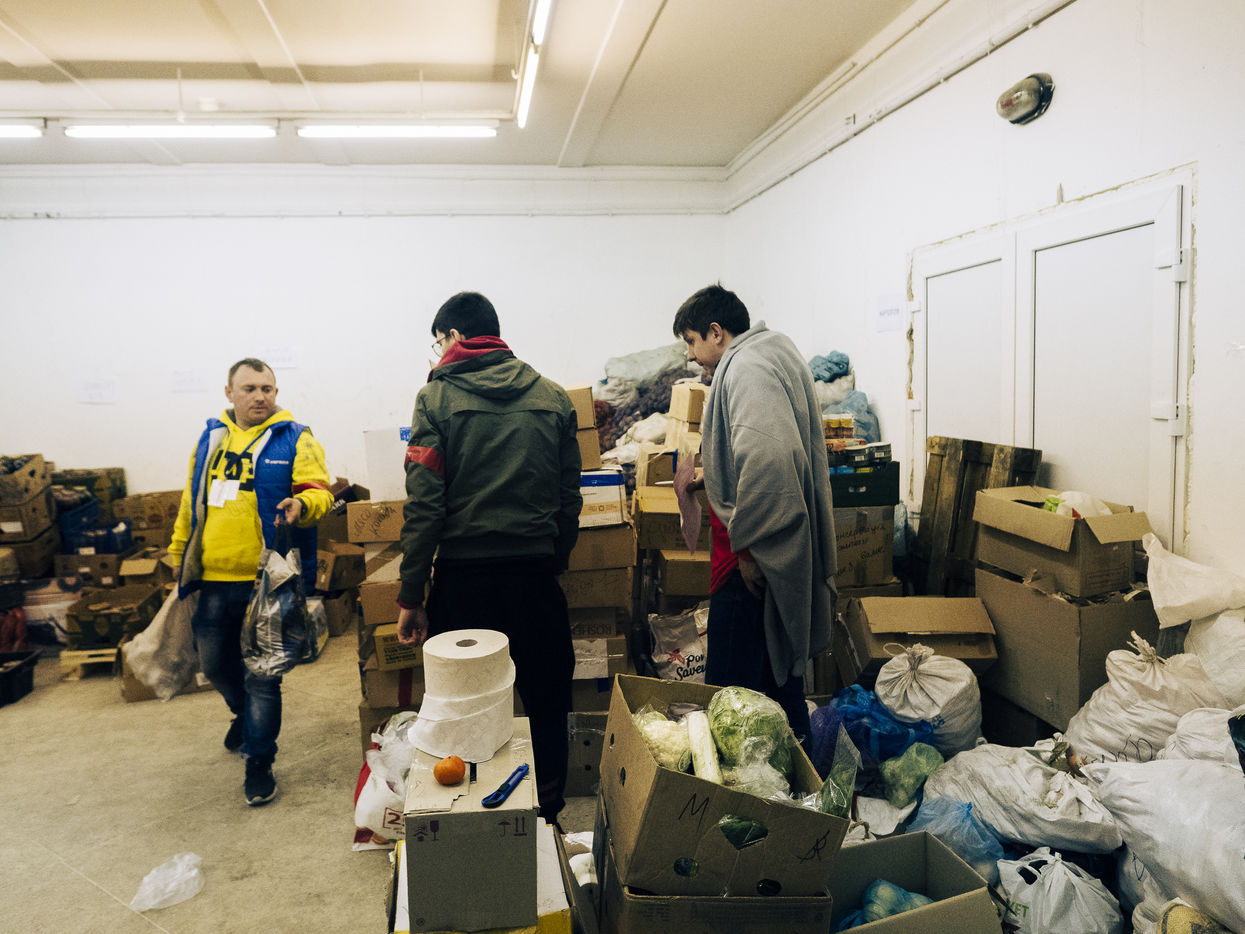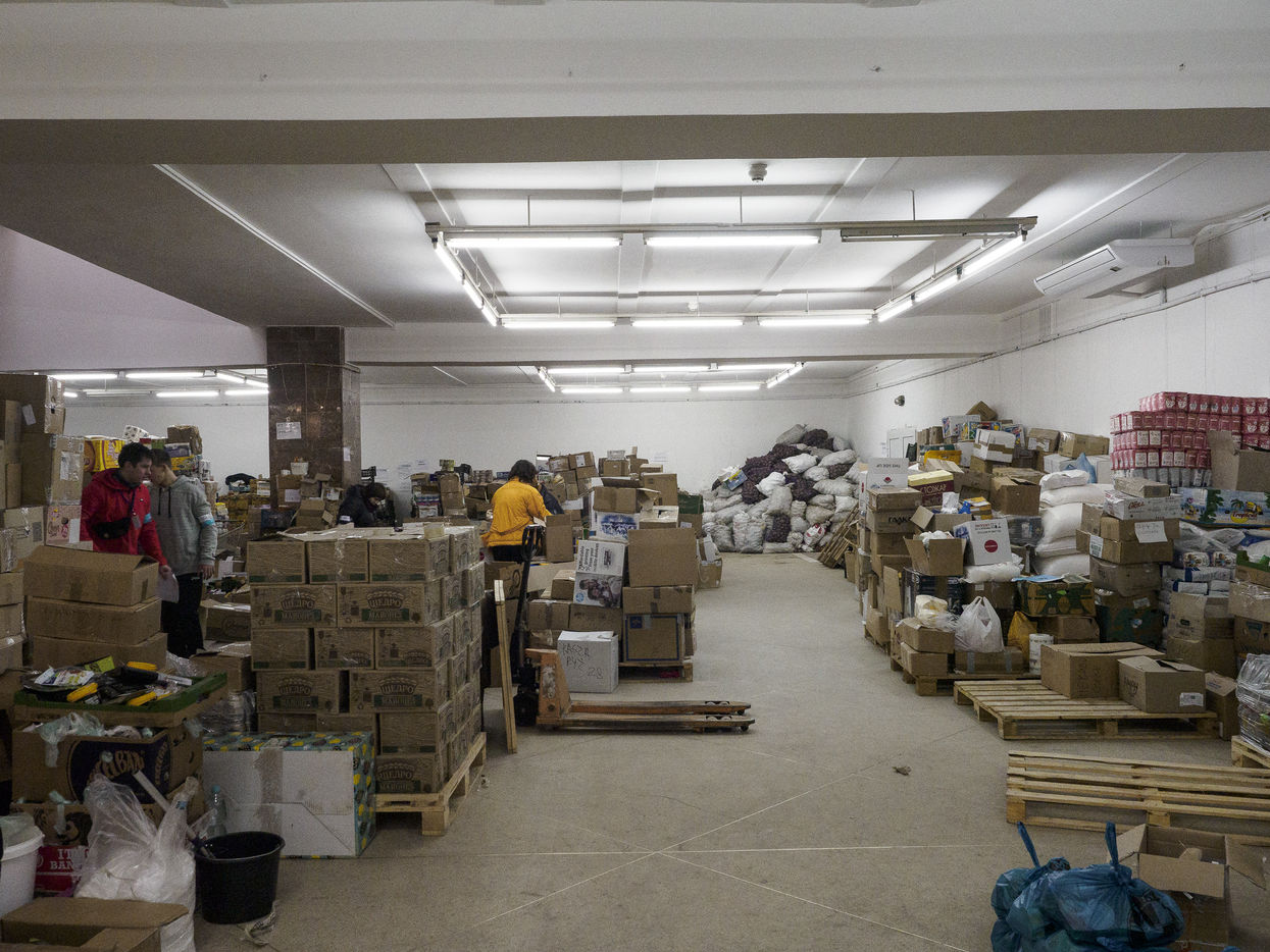 Au centre, dans la vieille ville, le centre d art a ete requisitionne par la ville pour y organiser un vaste centre humanitaire géré par des benevoles. Une veritable fourmiliere s active 24/24 tous les jours. : des femmes, des hommes, des jeunes, des vieux... Ils ont commencé par accueillir les dons afin de les dispatcher dans les régions proches, puis peu a peu ont grossi grâce a l afflux d aide européenne pour fournir tout le pays.