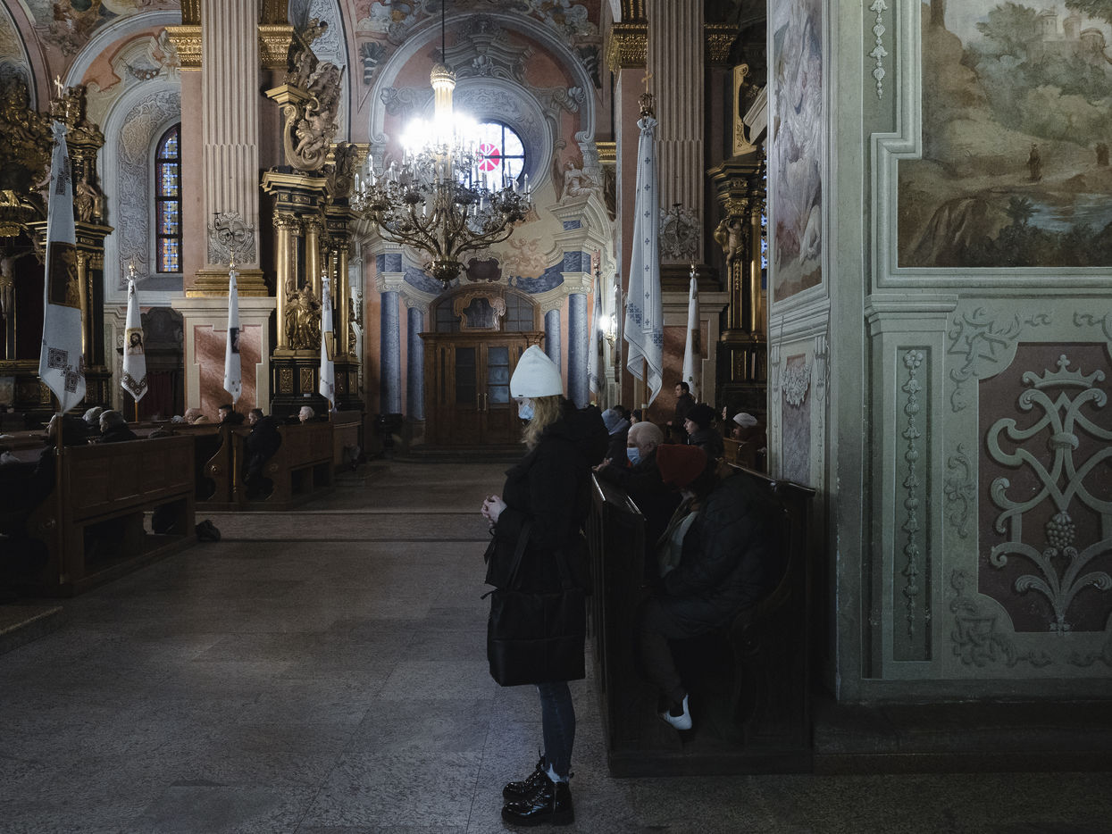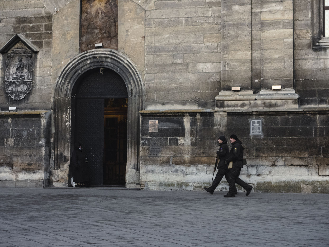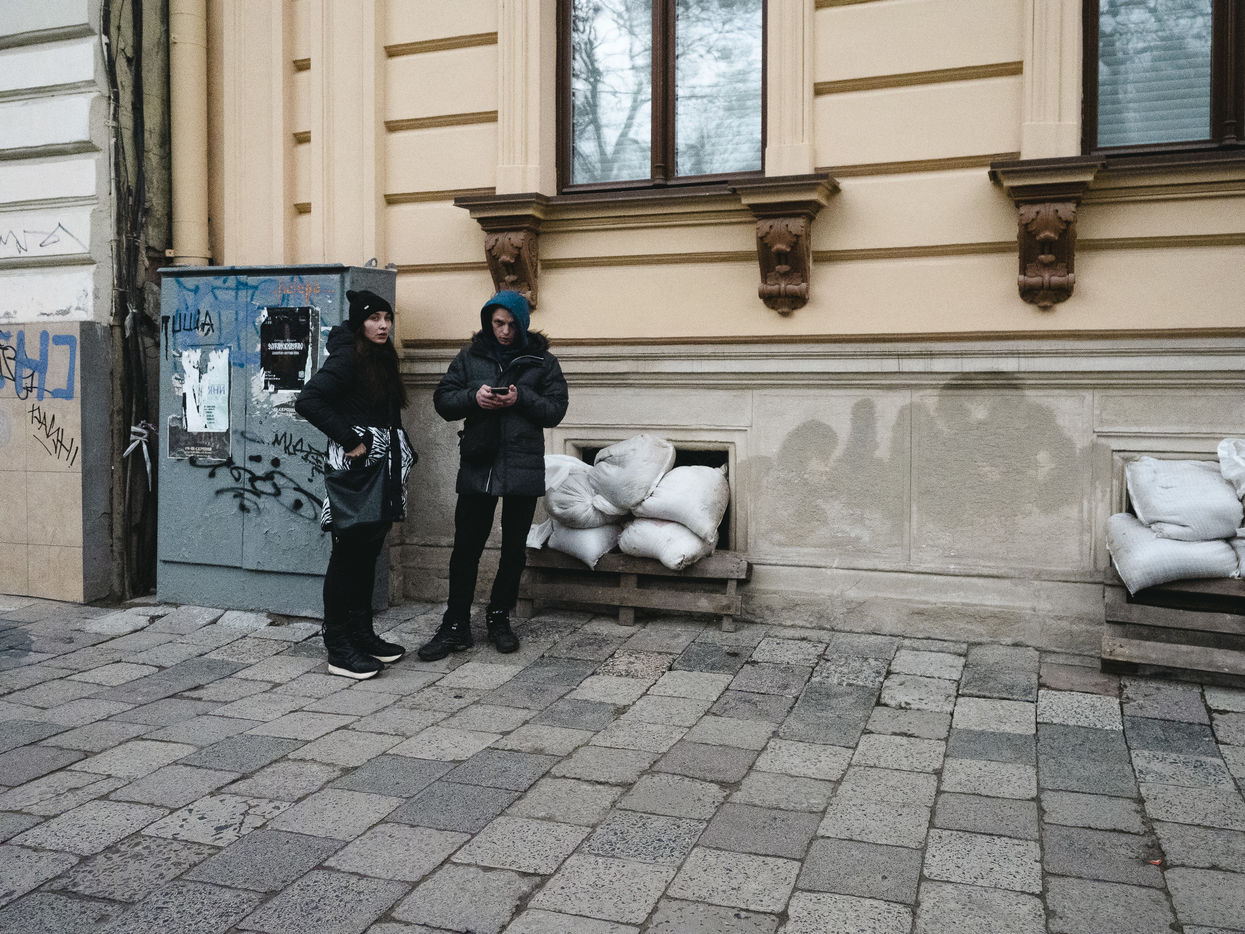 Lviv, Ukraine Mars 2022. La plus grande ville de l Ouest ukrainien se prepare a la guerre, toute la ville est en etat d urgence. Les habitants commencent a entendre les sirenes de la ville pour prevenir d un eventuel bombardement, meme si, pour l instant aucune bombe n a encore perce le ciel de cette ville d art.