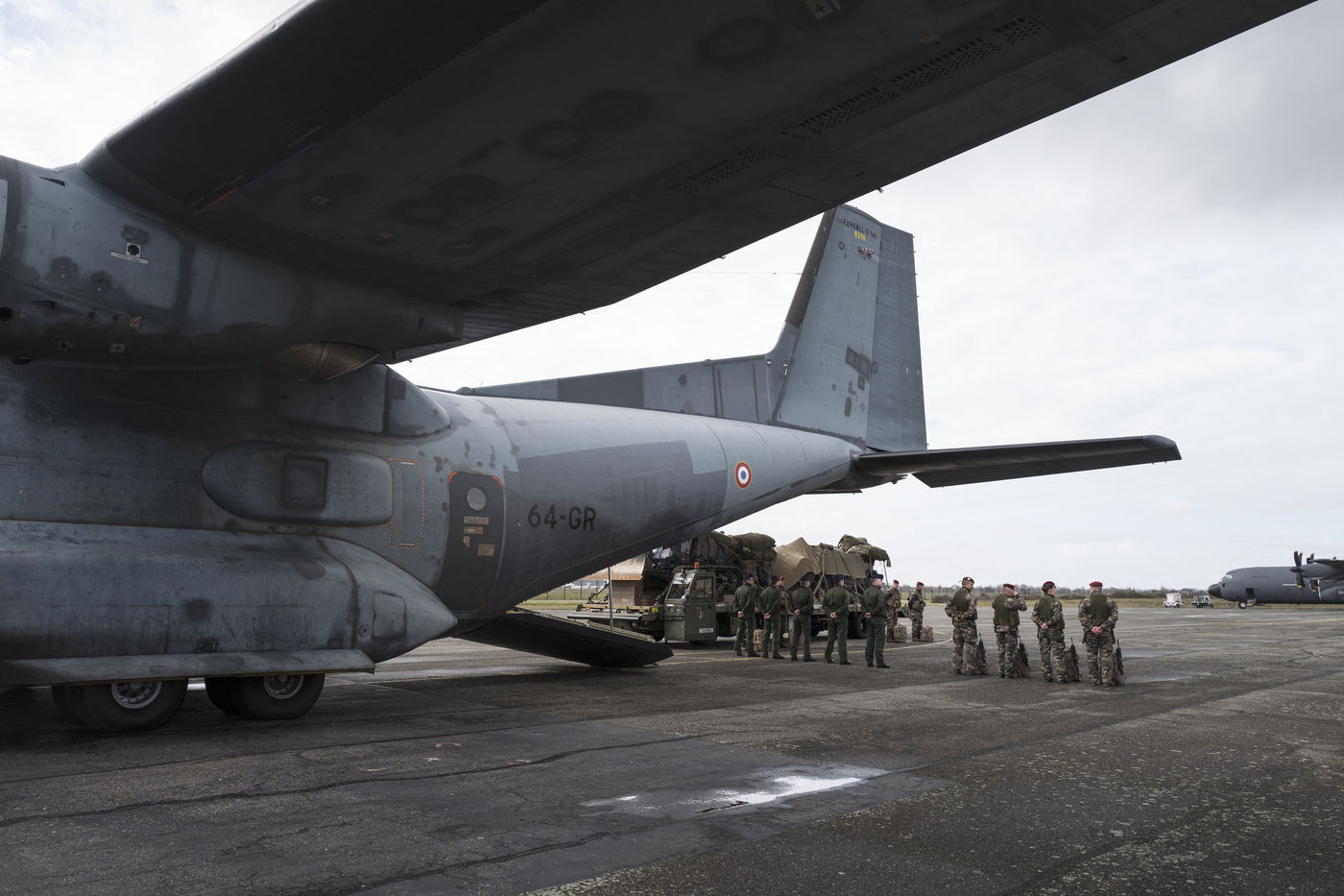 Le président Français Emmanuel Macron est à Toulouse le jeudi 17 Janvier 2019, au sein du pôle national des opérations aéroportées, pour présenter ses voeux aux armées.