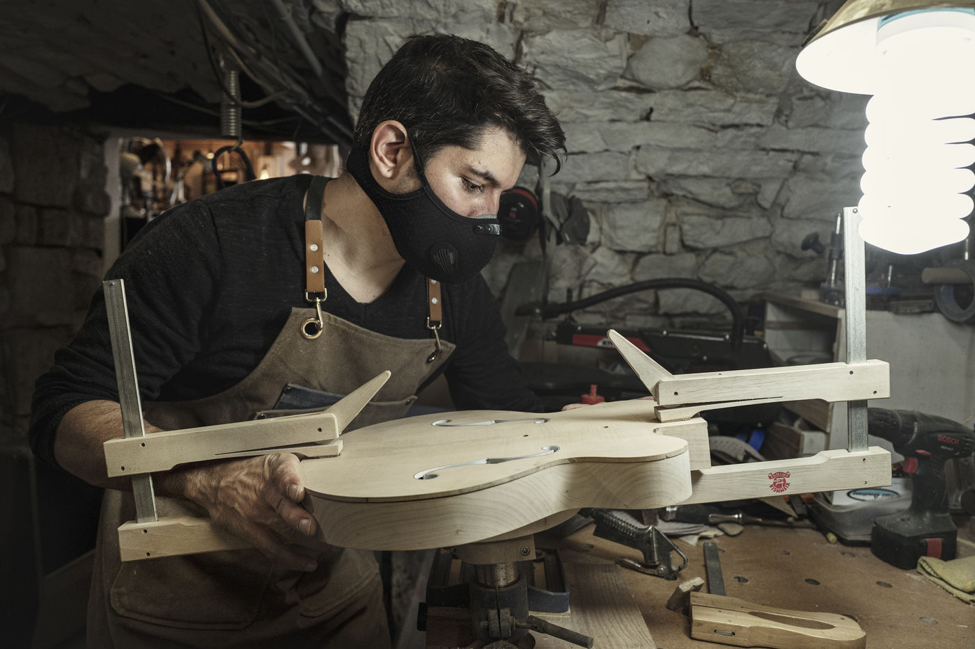 Aurelien Bontemps est un artisan luthier. Il pense et fabrique des guitares dans son atelier a Grabels dans l Herault.