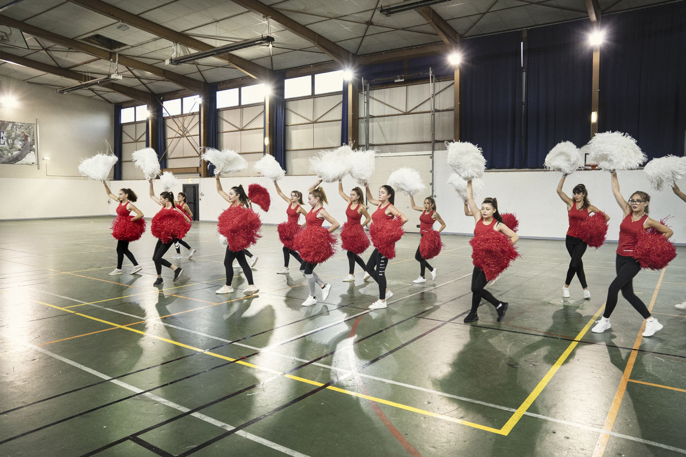 Des jeunes filles adolescentes membres d'un club de pom-pom girls s'entrainent à Port-la-Nouvelle dans l'Aude.
