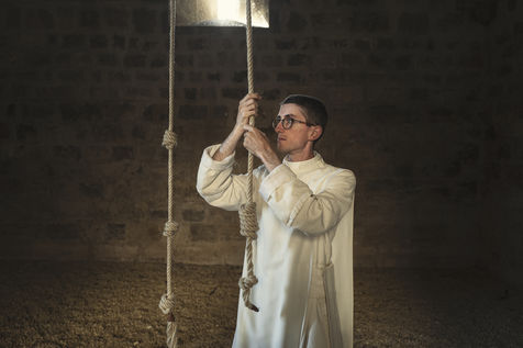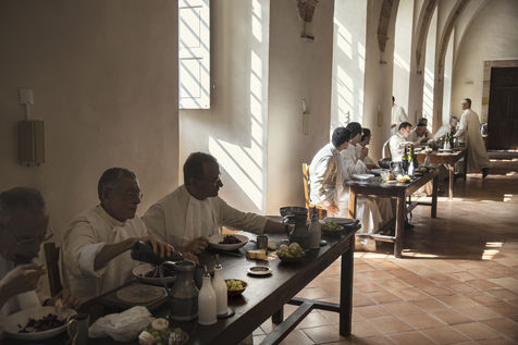 Chez les chanoines de l'Abbaye de Lagrasse dans les Corbières. Monastère bénédictin du VIIIe siècle au XVIIIe siècle, l'abbaye est vendue comme bien national à la Révolution française et coupée en deux lots.