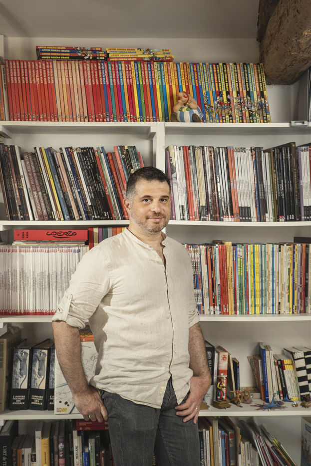 In the studio of comic strip artist Philippe Fenech, author of the drawings for the album "Idéfix et les Inréductibles" or the series "Mes Cop's".