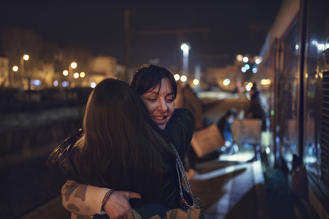 It is nearly 10 p.m. when the van arrives. Aaron waves to them but the van stops before passing the toll. Time to get dressed to face the rain, and Inna finally finds her aunt, her cousin with her daughter. A lot of emotion and fatigue, but they are finally here.