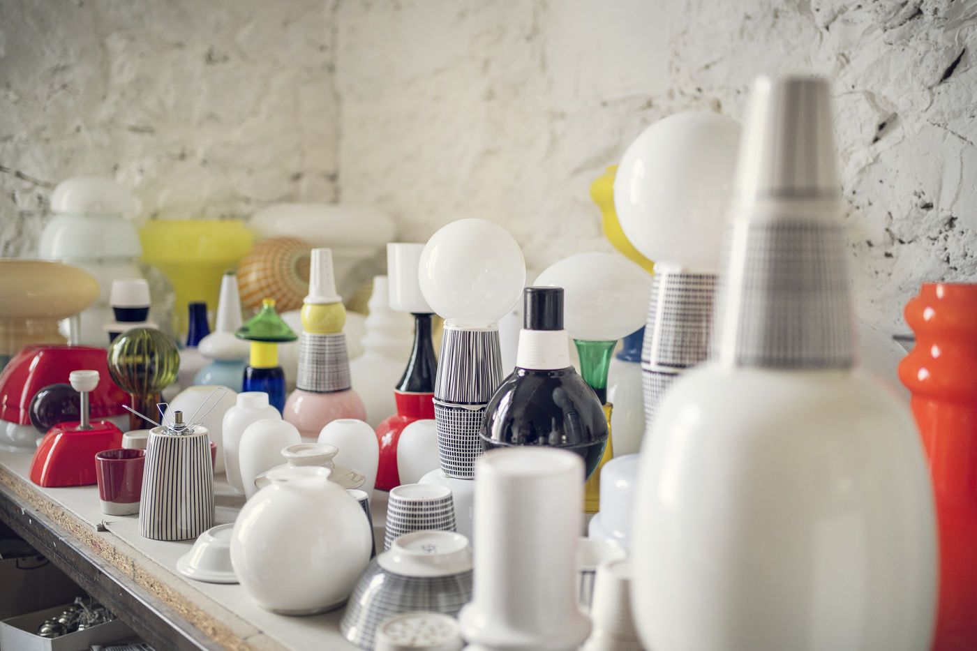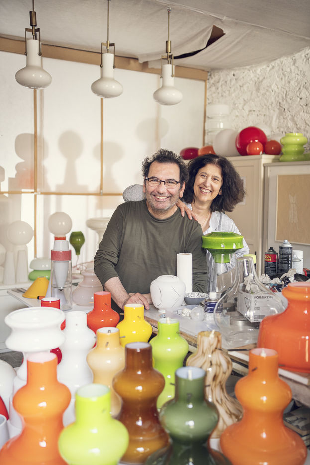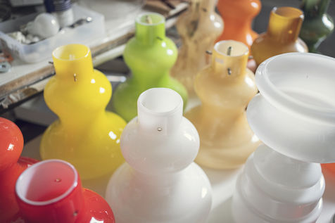 In the "Poisson Bleu" workshop of Claudio Isgro and Sylvie Romieu in Portel des Corbieres in Aude where they assemble Opalines to create new lights.