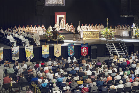 A mass, during the Pilgrimage of the Rosary, took place in the Arena de Narbonne performance hall in Aude. It brought together about 2000 people from all the parishes of the department. It was celebrated by the new bishop Monsignor Bruno Valentin.