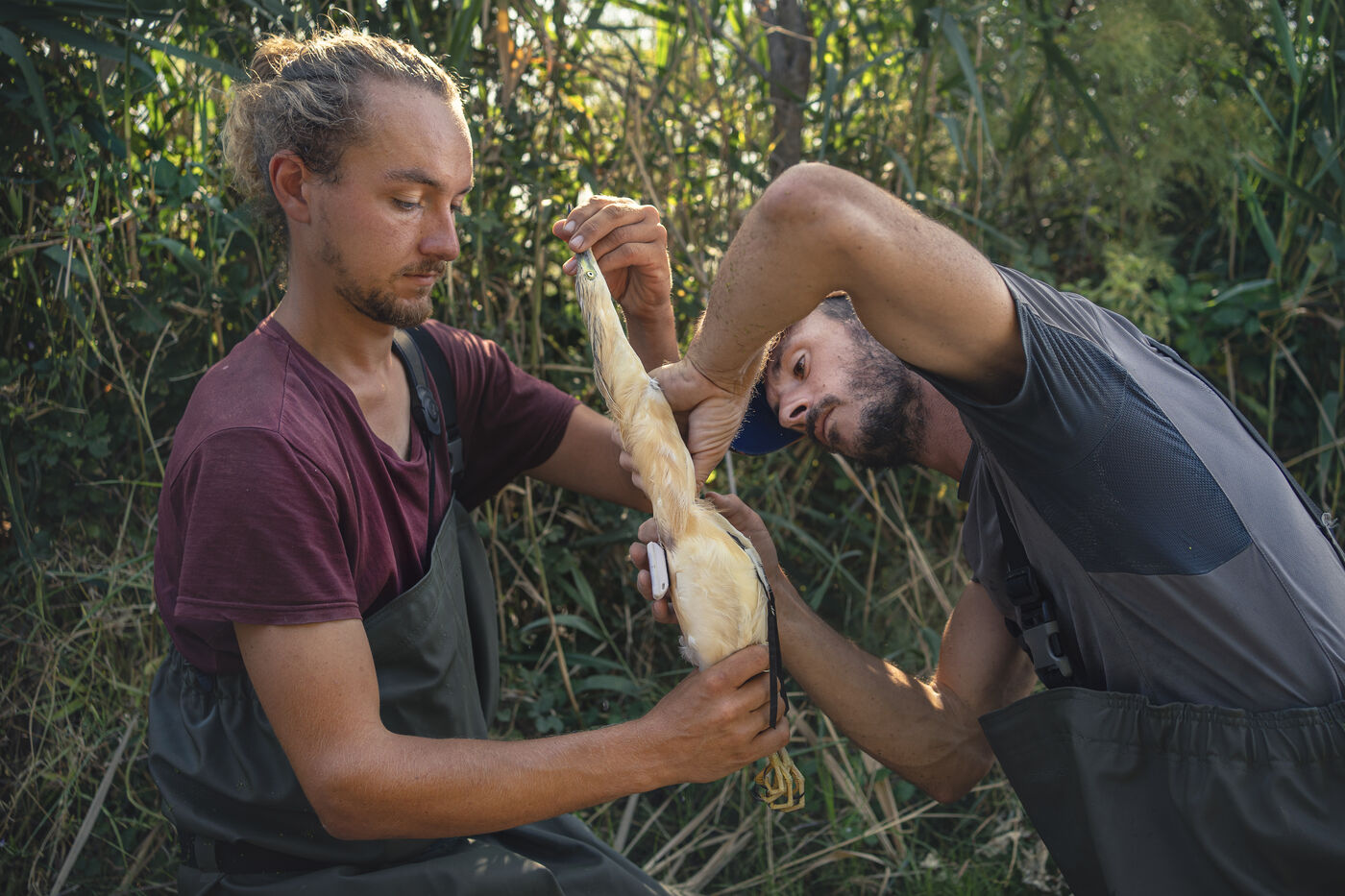 Report with ornithologists during the installation of GPS tags on protected birds in the Scamandre nature reserve in the Gard, as part of the Migralion project which makes it possible to measure the migratory flow of flying fauna over the Mediterranean Sea and the impact in the development of offshore wind projects.