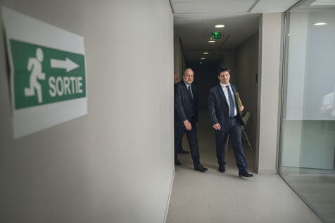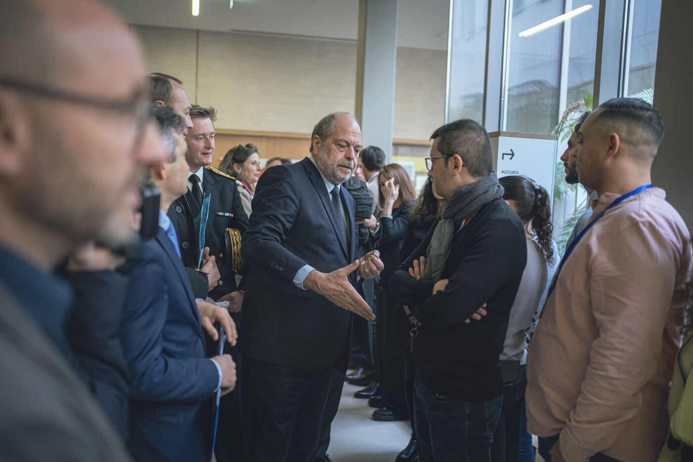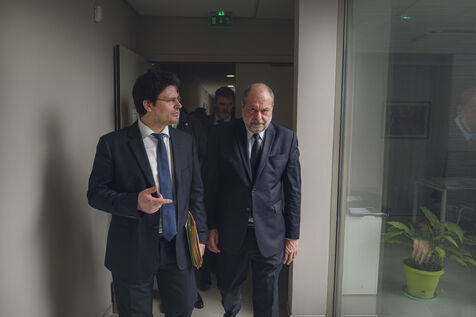 Eric Dupond-Moretti, garde des Sceaux, ministre de la Justice, en déplacement au Tribunal judiciare de Béziers dans l'Hérault.