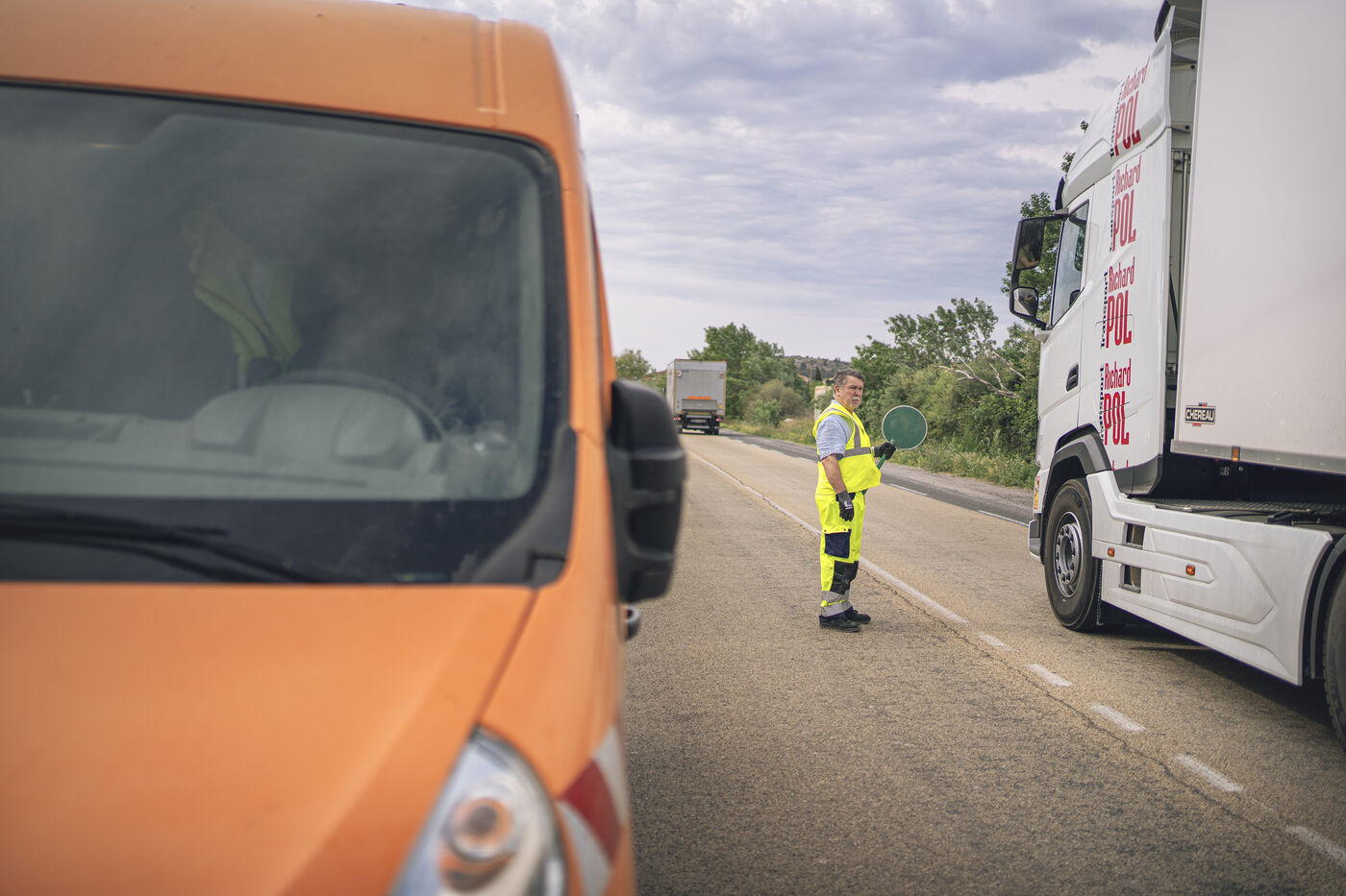 Opération nettoyage par la collecte de déchets sur le bord de la route part des bénévoles et le service des routes sur la départementale D6009 à Fitou dans l'Aude.