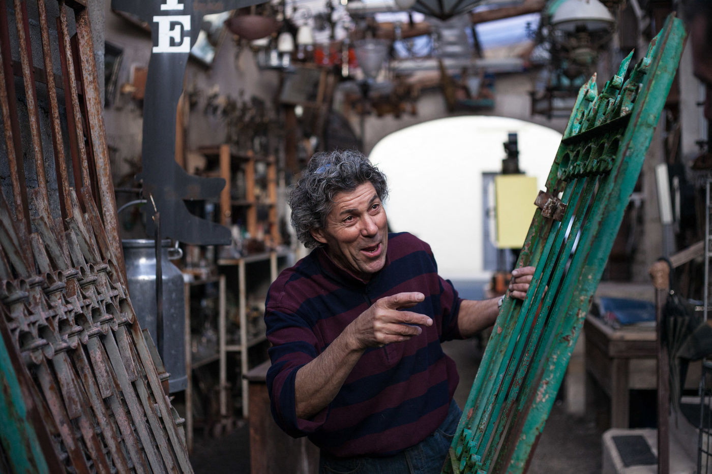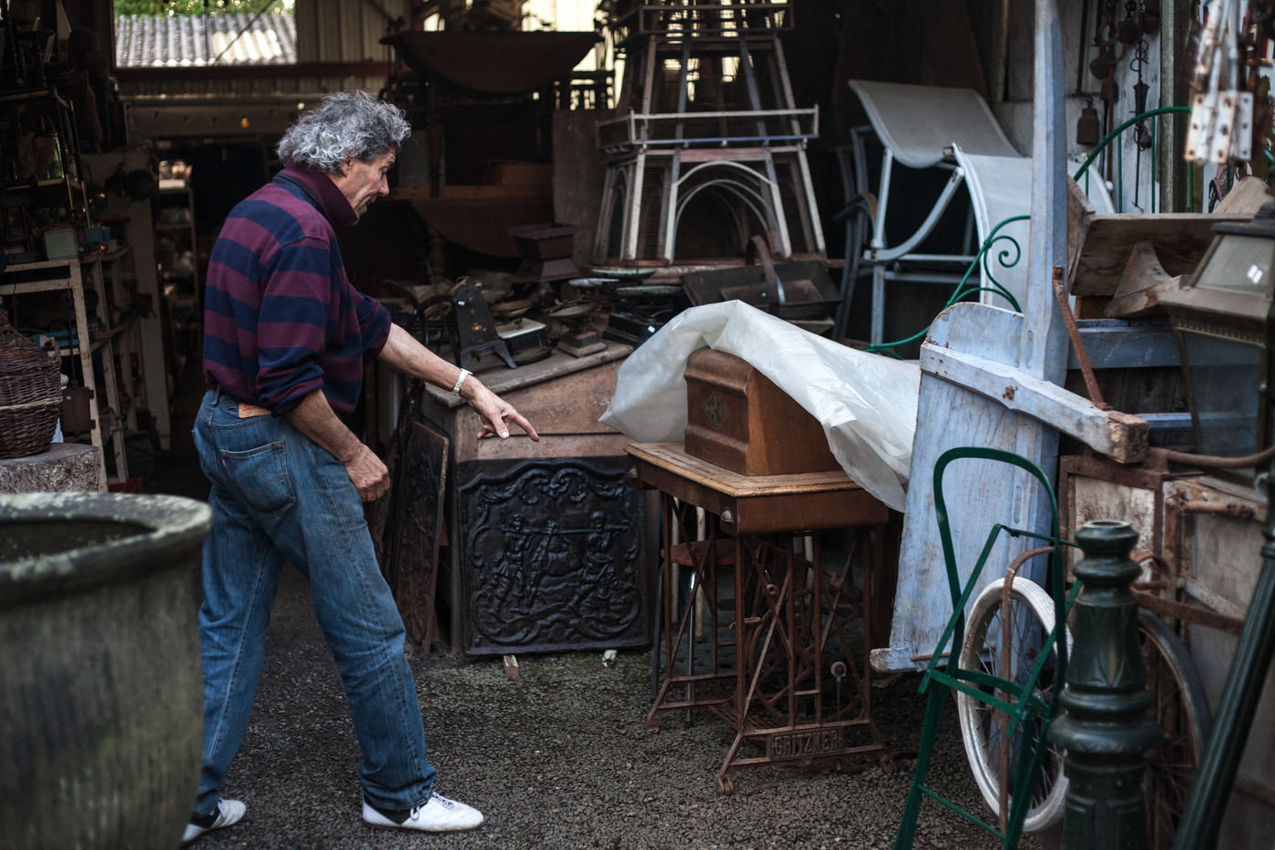 Alain holds a flea market located in Aigre, in Charente. He exhibits all kinds of objects and antiquities: bikes, furniture, trinkets, vinyls, old tools and old posters. He pick up abandoned objects that he finds or that people give to him. He restores them, repairs them, maintains them and gives them a new youth. His flea market is open every day except if he decides to go to make a spin with his companion in his truck .