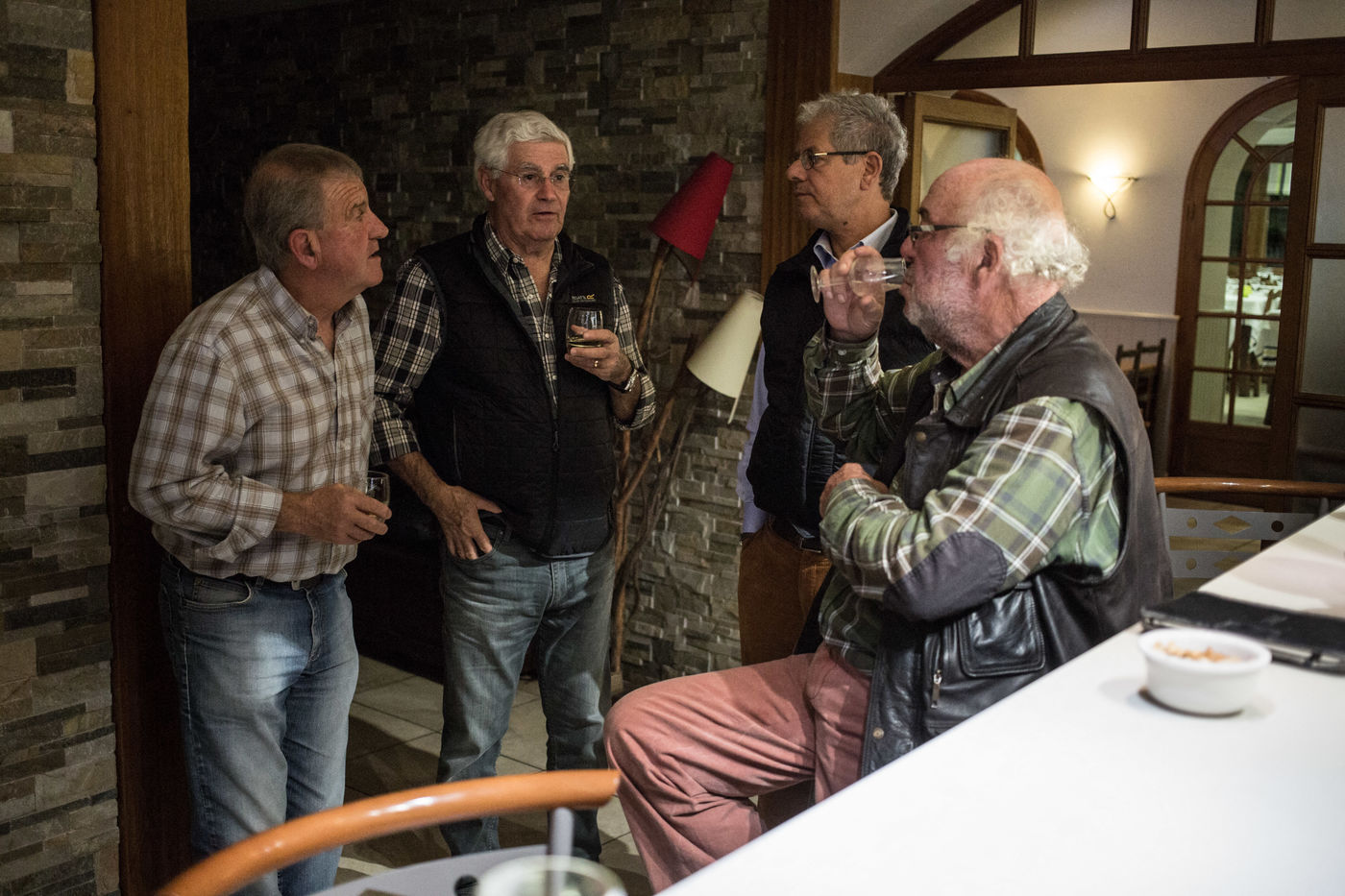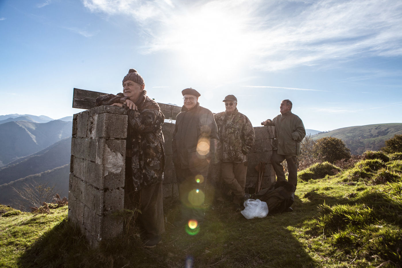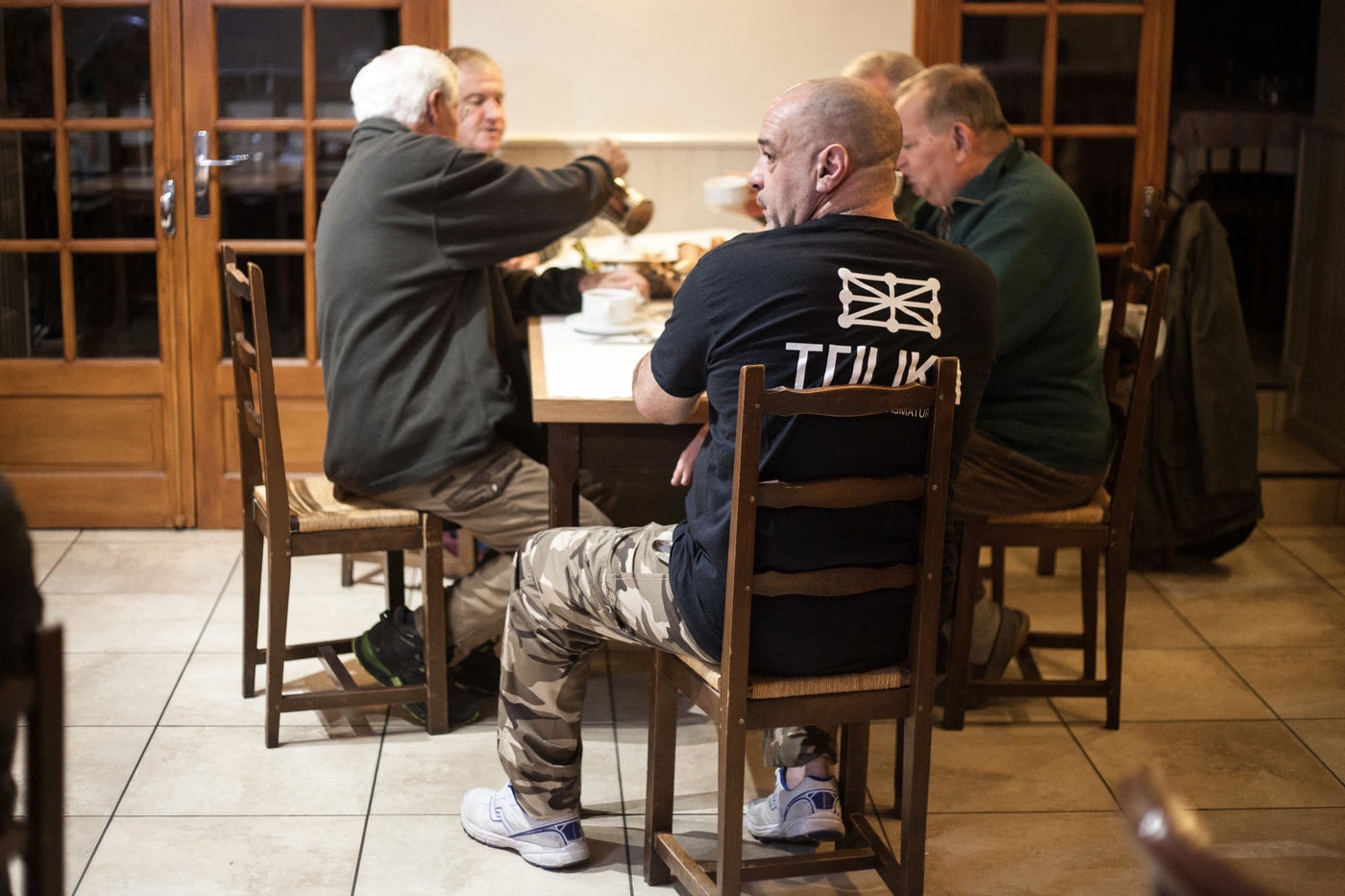 Chaque année, au mois d'octobre, un groupe de chasseurs se retrouve à l'hotel Les sources de la Nive à Esterencuby, dans le pays basque, pour une semaine de chasse à la palombe.