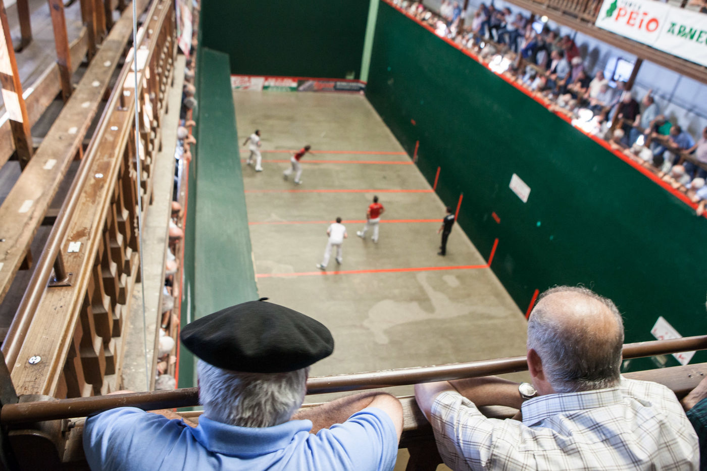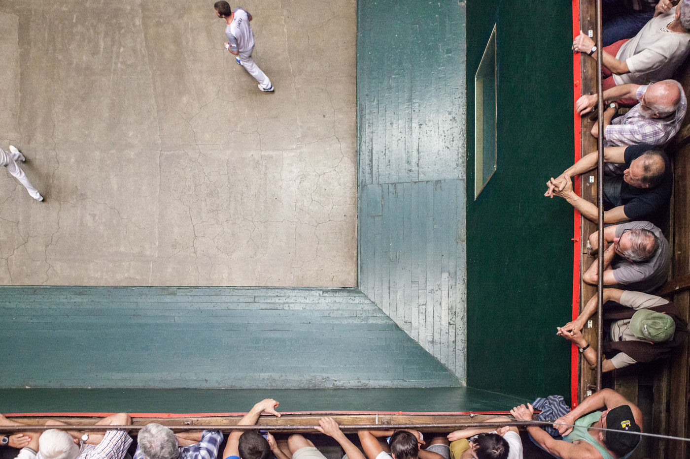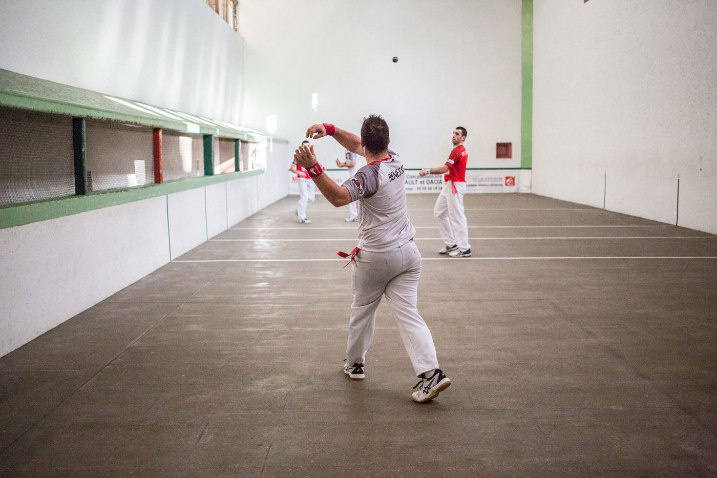 Il est bon, il gagne les compétitions, on le connaît bien dans le coin, il est vraiment sympa Jean-Philippe. Ses mains qu'il protège soigneusement dans les vestiaires, on préfère les voir jouer à la pelote que se les prendre en pleine poire. Le match commence, c'est le moment où les hommes du coin se retrouvent. On ne rigole pas, on pourrait penser que des paris sont en cours, mais ça, dans les trinquets, ça ne se fait surtout pas.