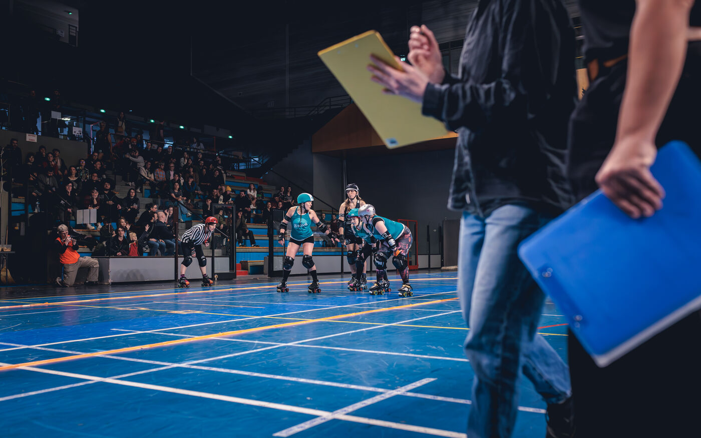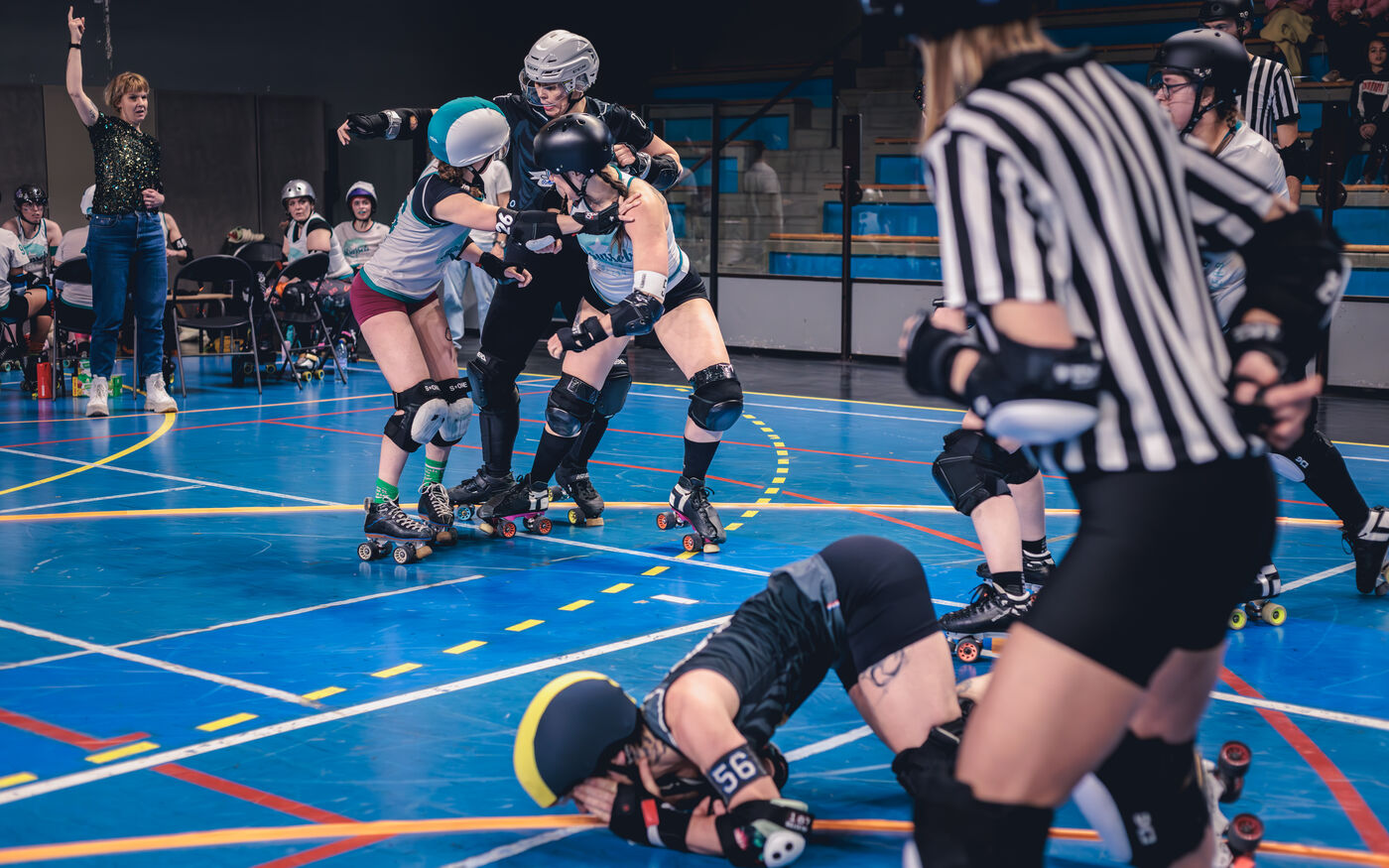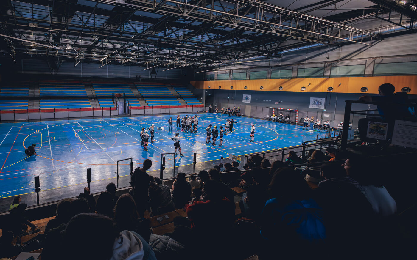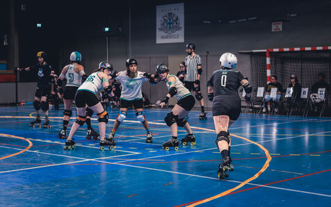 Les 22 et 23 fevrier 2025, la Salle Vallier de Marseille a vibre au rythme du tournoi Notre Jam de la Garde, organise par le Marseille Roller Derby Club. L’evenement comprenait cinq matchs reunissant des equipes venues d'Espagne et de Belgique.