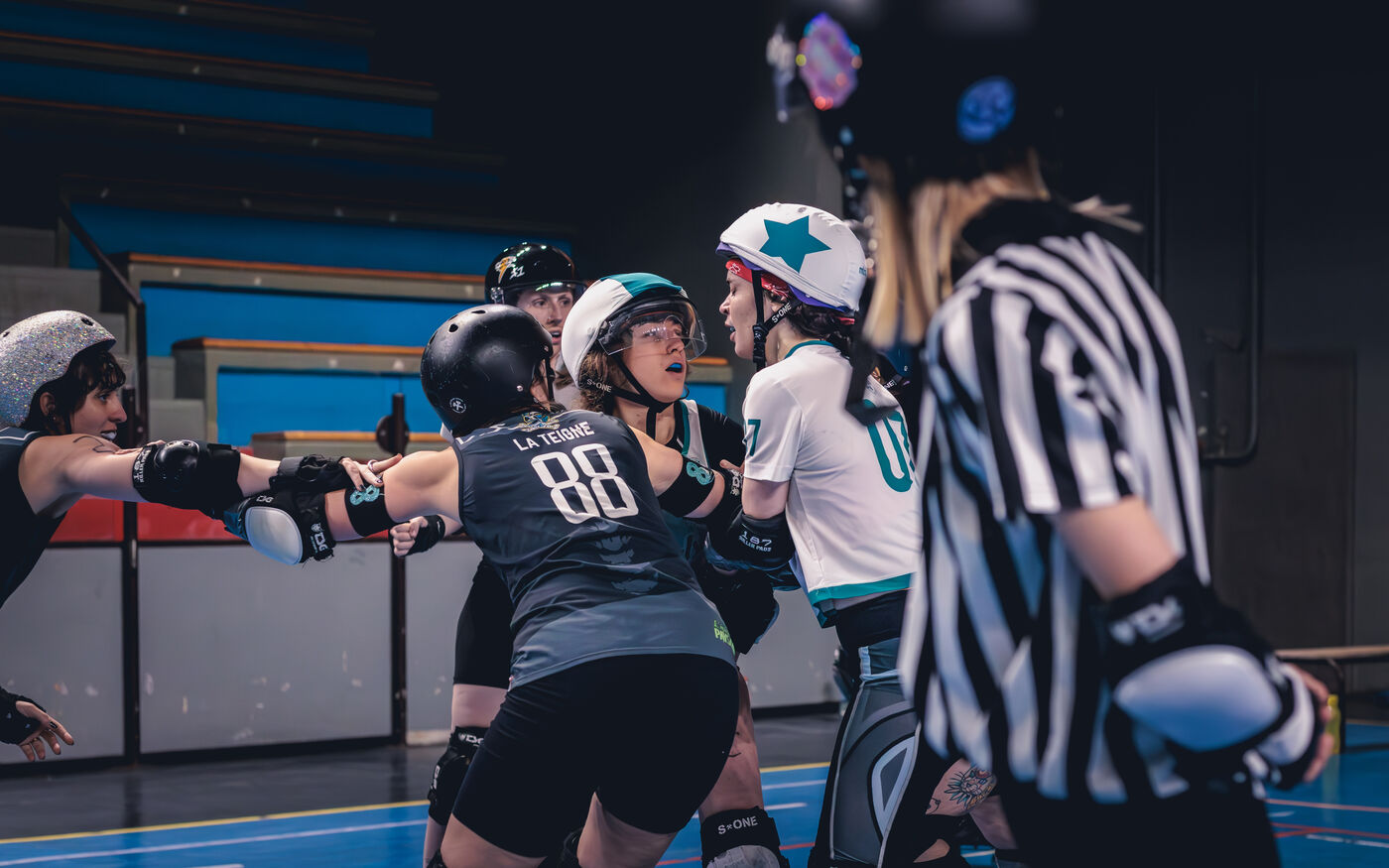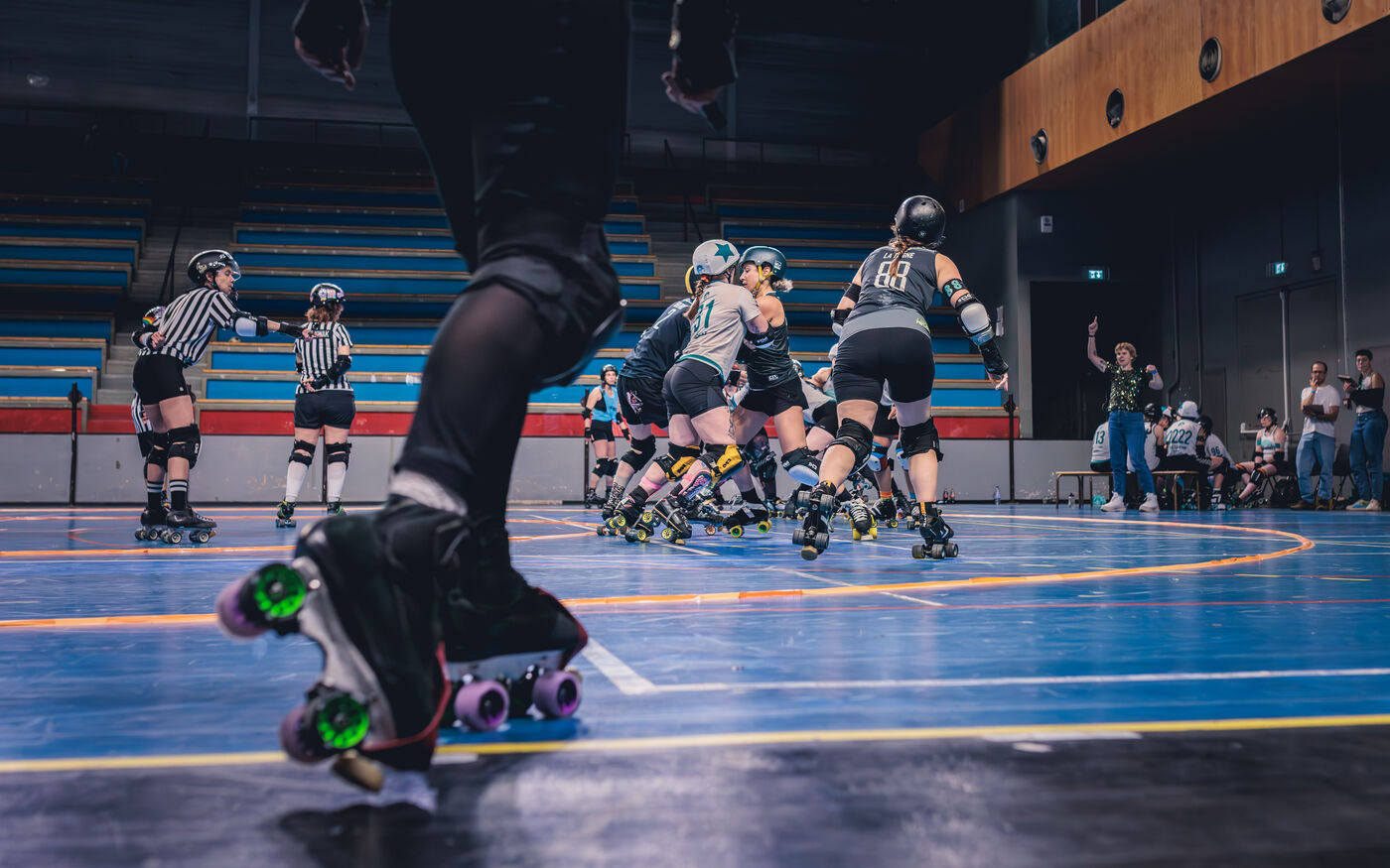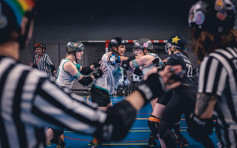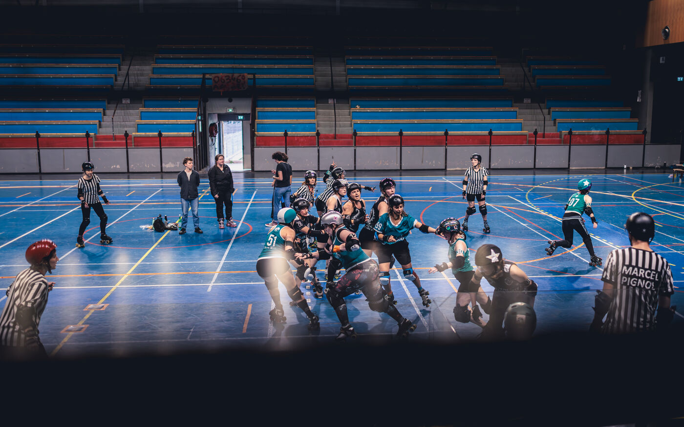 Les 22 et 23 fevrier 2025, la Salle Vallier de Marseille a vibre au rythme du tournoi Notre Jam de la Garde, organise par le Marseille Roller Derby Club. L’evenement comprenait cinq matchs reunissant des equipes venues d'Espagne et de Belgique.