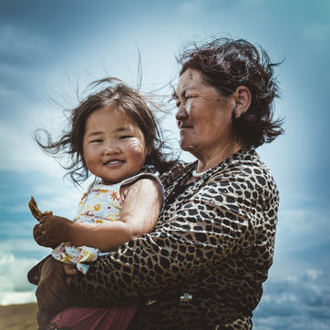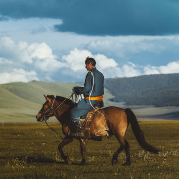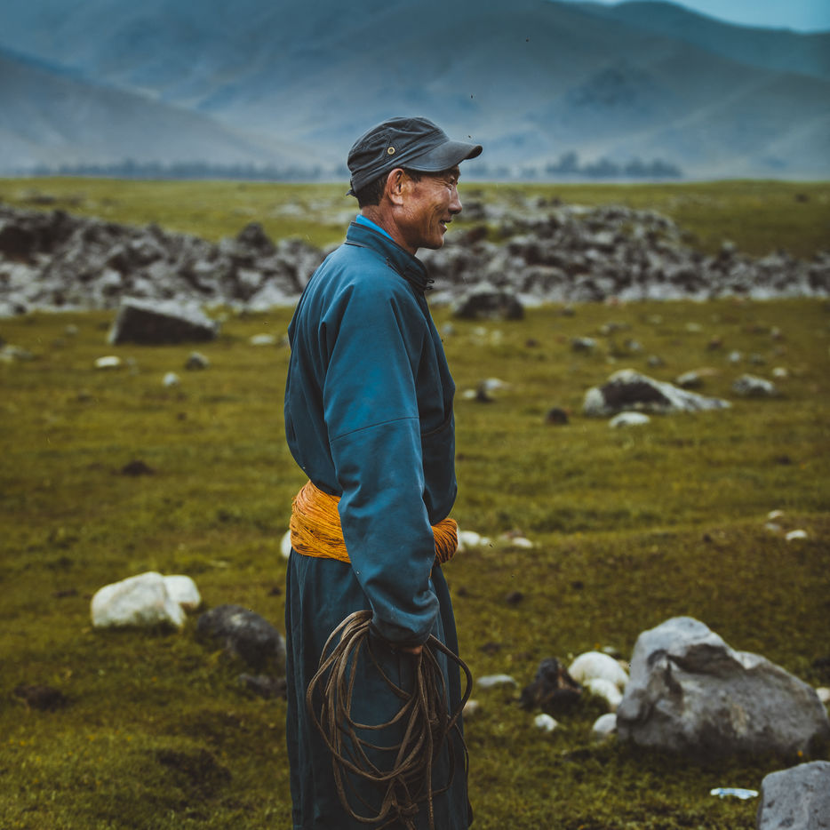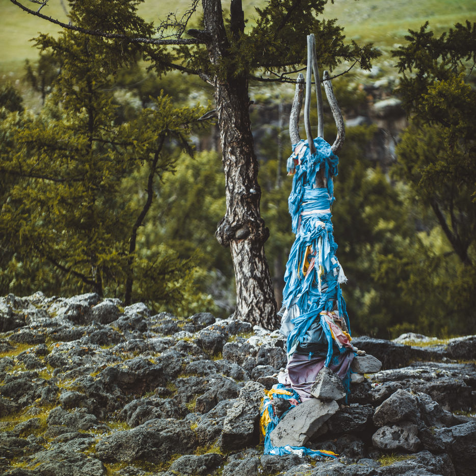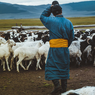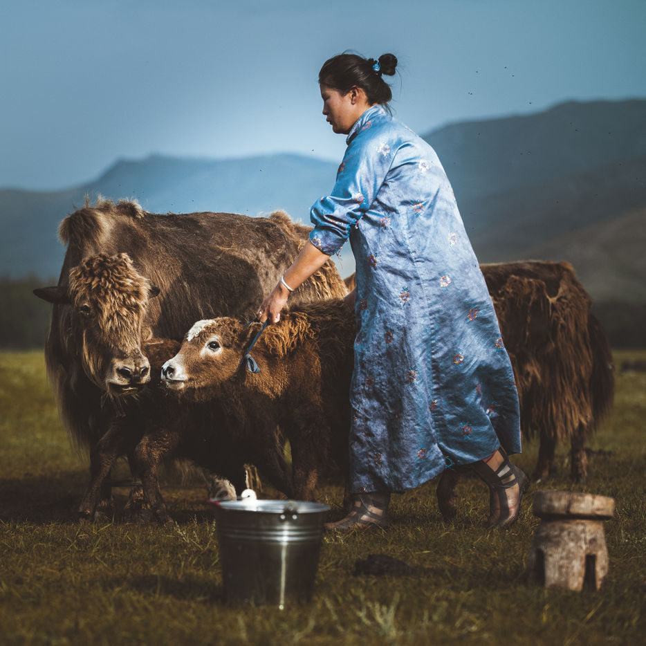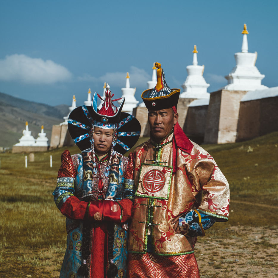 Le bleu est la couleur nationale de la Mongolie. Elle symbolise le ciel, si bleu dans ce pays et se retrouve parmi les couleurs du drapeau mongol. On la retrouve aussi très souvent dans les vêtements colorés des nomades.