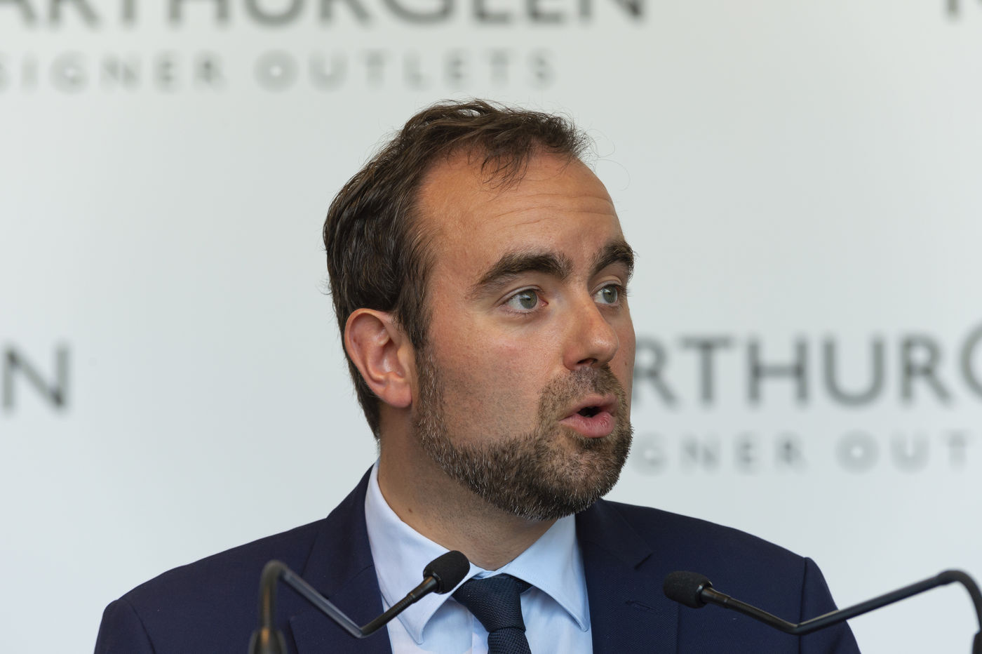 Sébastien LECORNU Ministre lors d'une inuaguration de chantier de centre commercial à Vernon dans l'Eure