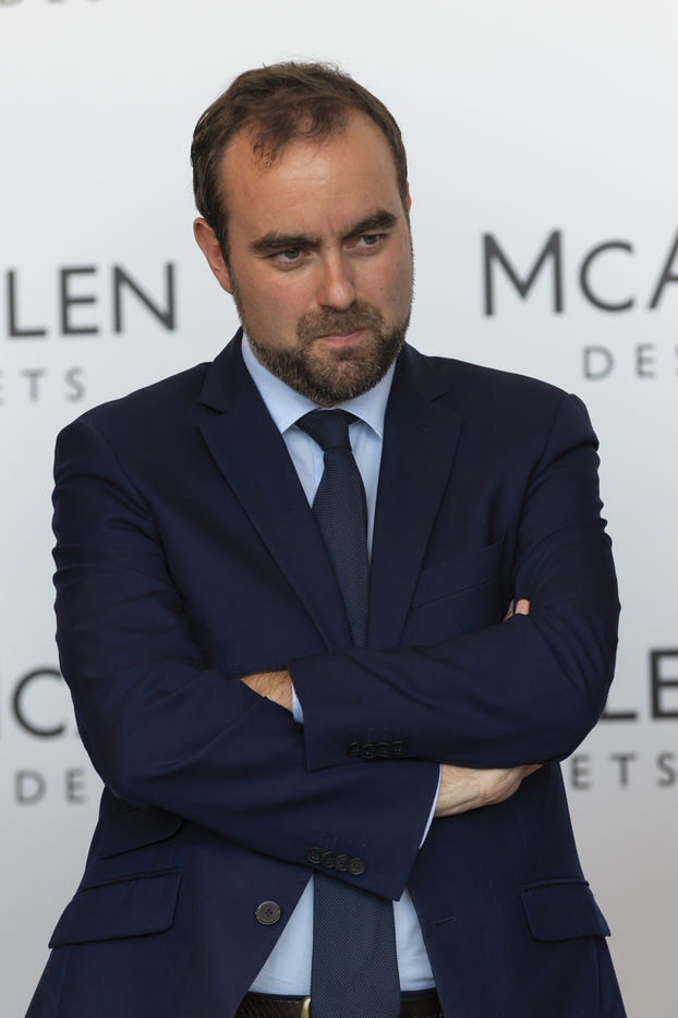 Sébastien Lecornu , Ministre des collectivités territoriales lors de la cérémonie de pose de la première pierre d'un grand centre commercial à Vernon dans l'Eure. Son arrivée , accueil par les élus locaux , discours