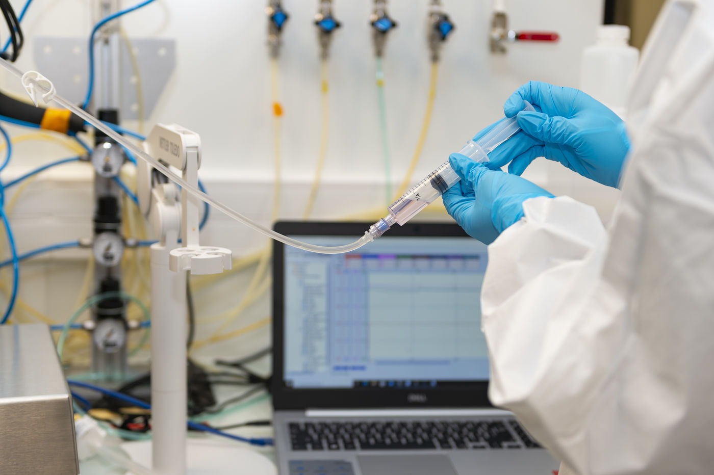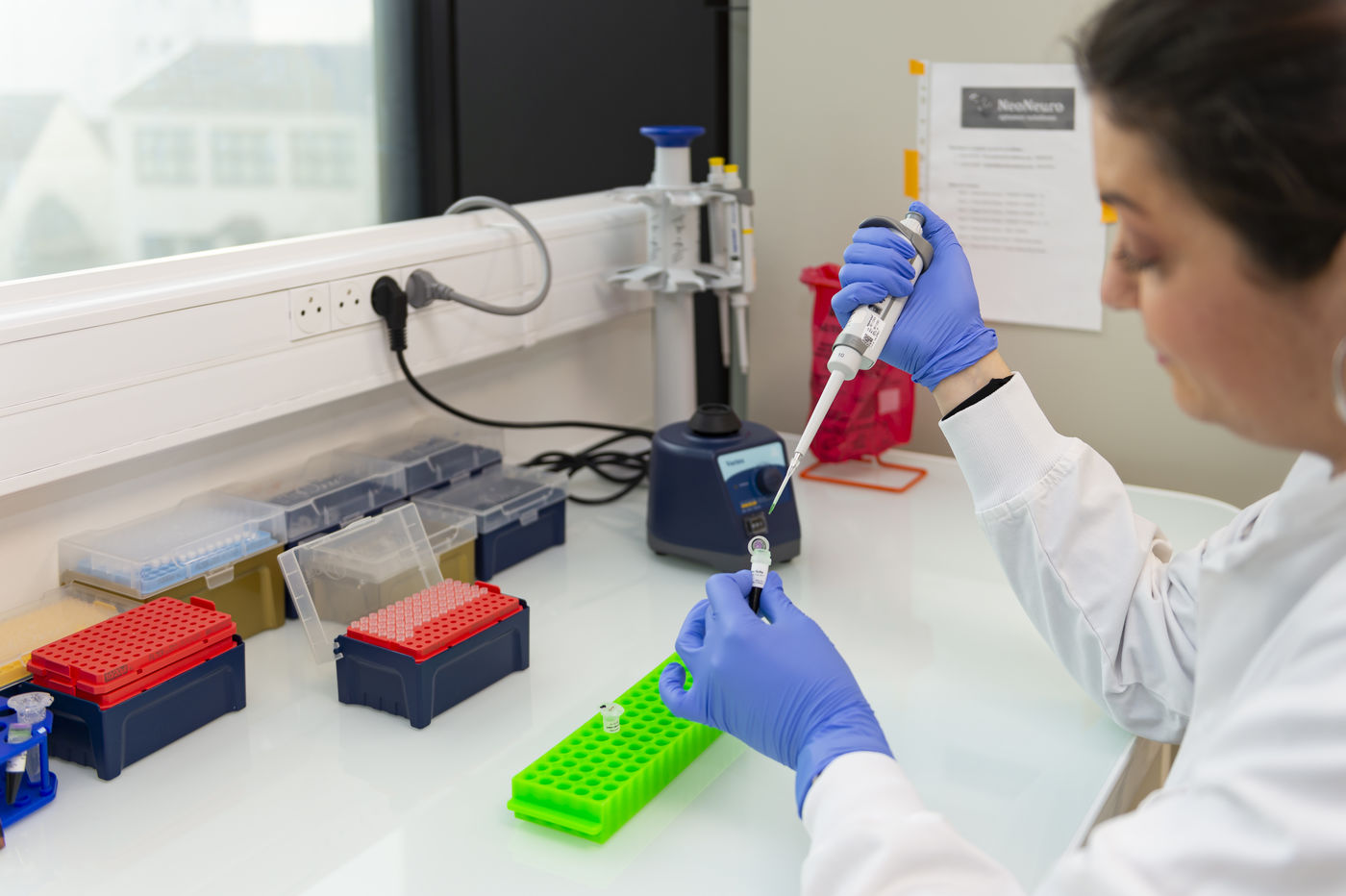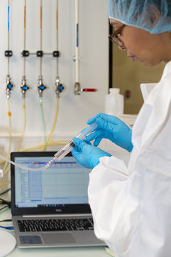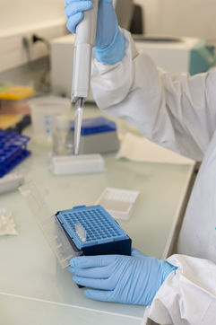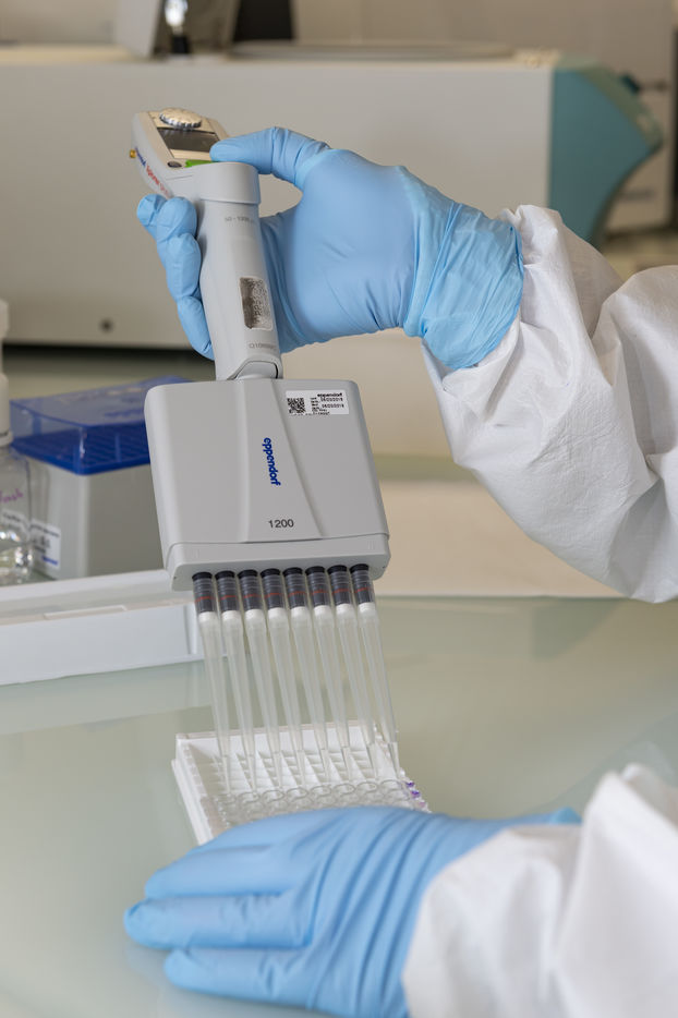Illustration de gestes dans un laboratoire de recherche pharmaceutique et médicale.