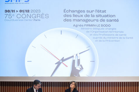 Agnès Firmin le Bodo speaking at the 75th SMPS congress (syndicat des managers publics de santé)