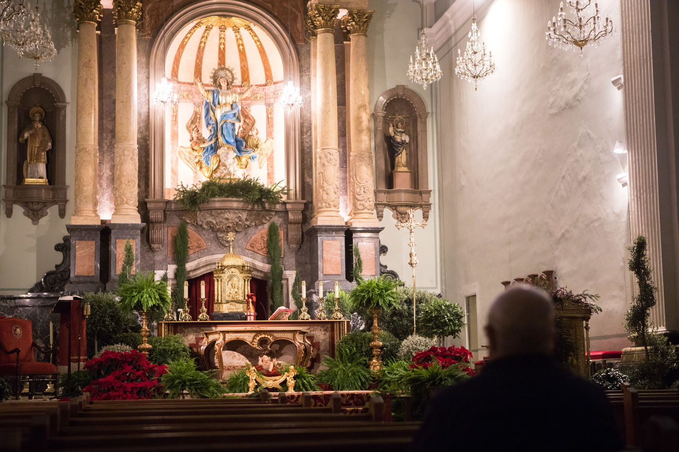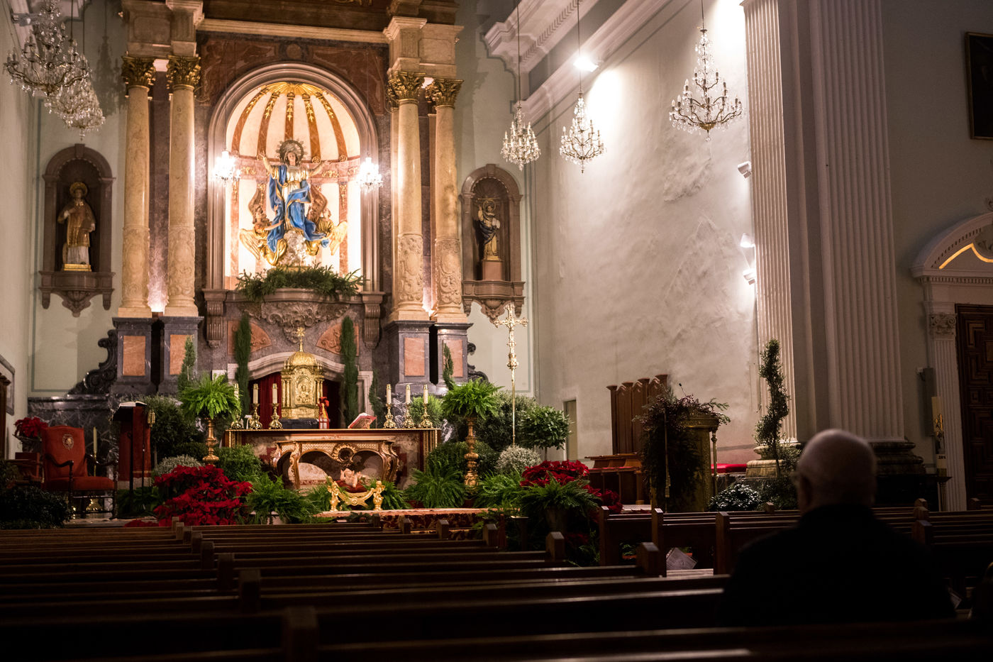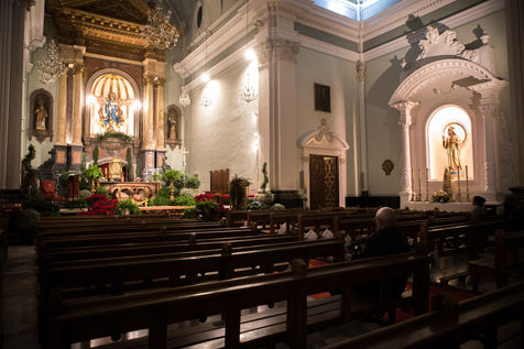 Older peoples pray in the pews of the Assumption Church in Denia, 30 december 2019.