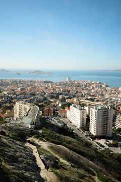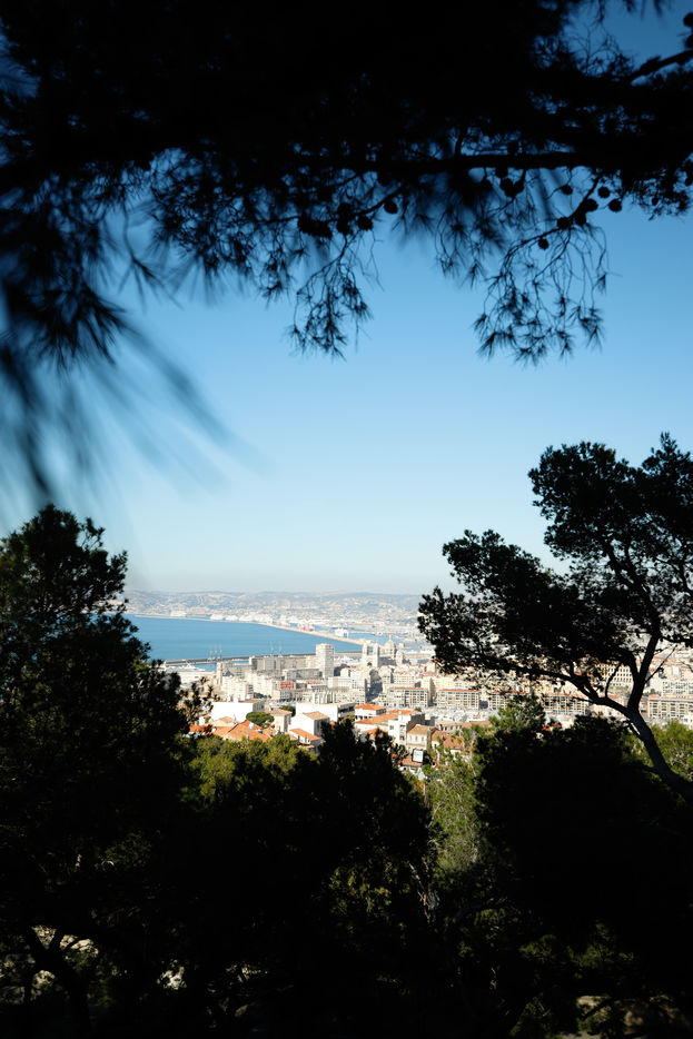 France, Marseille, 2022-12-01. Une vue panoramique sur Marseille depuis la basilique Notre-Dame de la Garde. Photographie par Iselyne Perez-Kovacs / Hans Lucas.