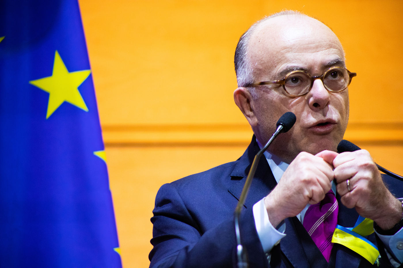 France, Montpellier, 2022-03-02. Bernard Cazeneuve speaks in the Hidalgo's meeting as part of the 2022 presidential elections in France. Photography by Iselyne Perez-Kovacs / Hans Lucas.