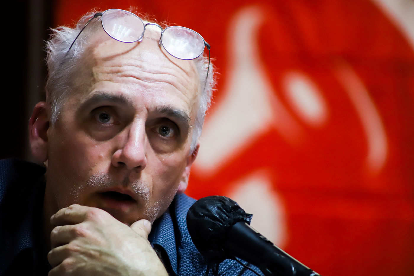 France, Montpellier, 2022-03-11. Philippe Poutou a tenu un meeting dans le cadre des elections presidentielles 2022 en France. Photographie par Iselyne Perez-Kovacs / Hans Lucas.