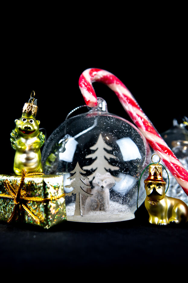 France, Montpellier, 2022-12-19. Illustration of Christmas tree bulbs. Photography by Iselyne Perez-Kovacs / Hans Lucas.
