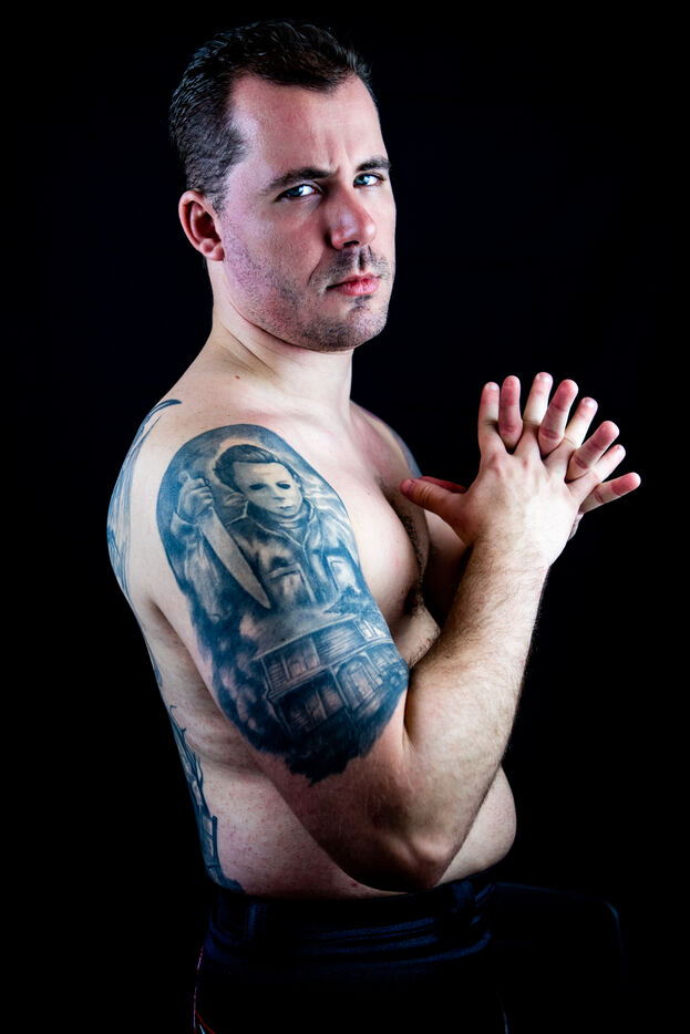 France, Montpellier, 2022-12-21. Portrait of Drix (Cédric Ramadier), wrestler. Photography by Iselyne Perez-Kovacs / Hans Lucas.