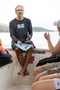 There is no guarantee of seeing cetaceans when we leave, but thanks to his acoustic instrument, the hydrophone, Eric Cockx, the captain on board, passionate and knowledgeable about marine mammals, is able to estimate the position of cetaceans and recognize by their sound the different species of marine mammals that can be encountered throughout the year. Some species are migratory and arrive from cold waters from December onwards, such as humpback whales and sperm whales. It is for the "mating" season when the whales come to find a partner or give birth in the warm waters of Guadeloupe from December to May.