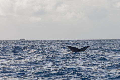We also saw sperm whales, well... their caudal part. This part is important to photograph to identify them. It is through these photo-identifications, considered as their fingerprints showing the shape and details of their tail, that we can identify them. This allows researchers to recognize who they are, working on research and census. They all have a name.
