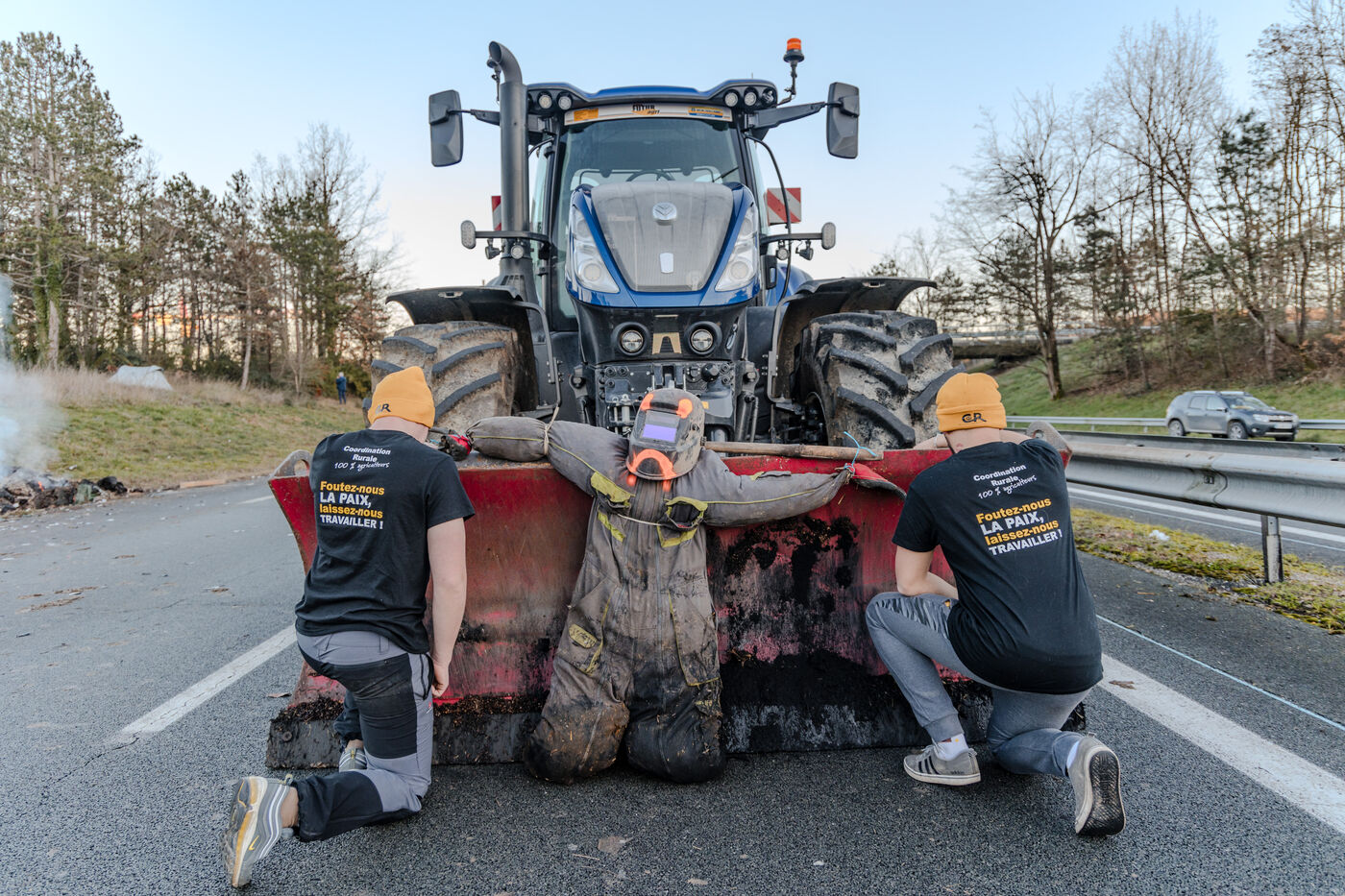 Throughout the day and into the evening, a large number of farmers mobilized in Agen. Present since Monday January 22 on the A62 freeway on-ramp to Toulouse and Bordeaux, they are still waiting for answers to their demands. In stages since Monday, farmers have demonstrated their anger by dumping slurry, tires, earth and tarpaulins in front of strategic sites such as the prefecture, certain supermarkets, the train station and various key points in the town. At the same time, they blocked access to the A62 freeway in both directions at junction 7. Every evening, they gather in large numbers - around 250 farmers on this Thursday evening - to exchange views, take stock of the day's events and discuss future actions. They take turns sleeping on the spot. There's an agricultural patriotism, a growing solidarity with the distress of farmers facing absurd and contradictory laws. French farmers have some of the most virtuous practices in the world, yet they are neither helped nor listened to in the face of the irrational standards demanded of them by the State. What's more, they are calling for measures to counter unfair competition, to promote the sale of French products as a priority, to reduce administrative complexities, and to lighten taxation and administration...