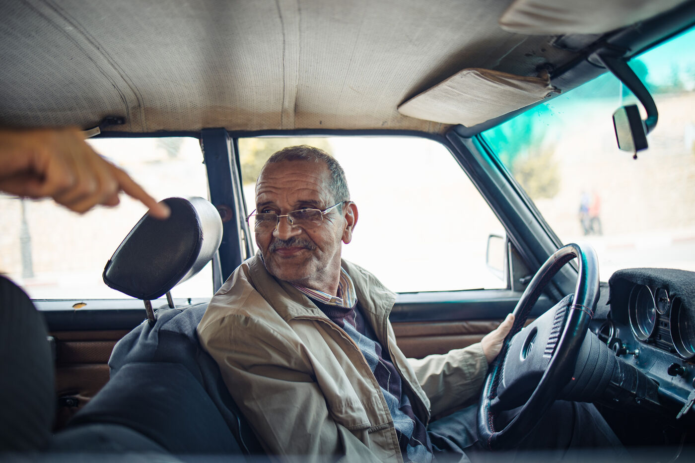 Pour visiter Fez confortablement, j'ai loué un taxi avec chauffeur, mais pas le premier chauffeur venu. Un chauffeur avec sa vieille Mercedes, qui semblait aussi âgée que lui. Tous deux donnaient l'impression de venir d'une époque révolue. Il ne parlait pas français et encore moins l'anglais et toi, tu connaissais juste quelques mots en arabe. On arrive toujours à communiquer avec un peu de tout. À la fin de ce voyage à Fez, nous connaissions un peu plus Mohamed. Cet homme de 75 ans travaille encore, car il n'aura pas de retraite. Ses trois grands enfants sont encore à la maison puisqu'ils ne trouvent pas de travail après des études dans la biologie et l'informatique. Mohamed doit continuer à travailler pour nourrir sa famille. La famille, c'est sacré au Maroc, c'est le socle. Ils s'entraident, n'ayant pas d'aide sociale comme en France.