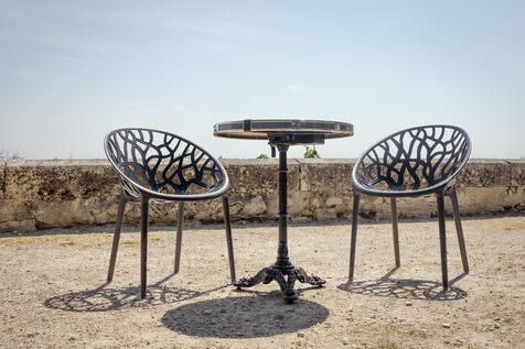 Une table bistrot connectée pour recharger les portables.