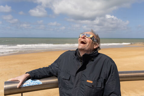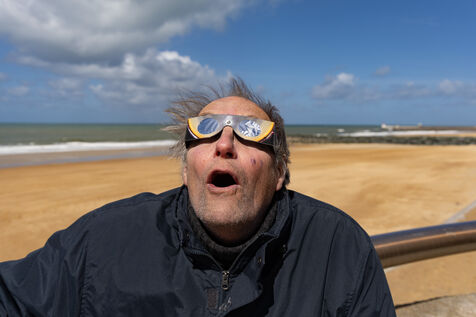 Pascal, compagnon d'observation, avait pris soin de porter des lunettes spéciales pour préserver sa rétine des rayons solaires. Ensemble, nous avons partagé un moment privilégié, seuls témoins de cet alignement céleste dans ce coin de Capbreton.