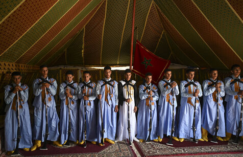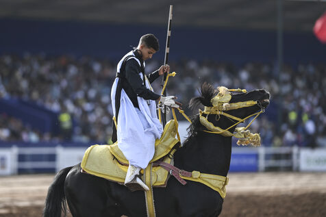 The images progress to narrate the buildup: from moments of motivation shared under the tent, to solemn individual portraits, then alignment before the judges during the Hadda phase, where every detail counts — attire, posture, coordination. Then comes the critical moment: three gunpowder charges requiring precise execution in galloping, synchronized firing, and collective stopping. In one charge, the Guelmim-Oued Noun Sorba directs their rifles downward — a symbolic gesture echoing Saharan warrior tactics once used to target enemies hiding in trenches.