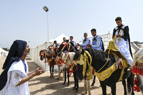 Au cœur d’une tente marocaine traditionnelle, l’histoire commence. Les tenues de Tbourida sont soigneusement préparées : drâa, saroual, ceinture, babouches et exemplaires du Coran. Dans cet espace imprégné de symboles, de jeunes cavaliers s’habillent mutuellement, s’aident, et s’alignent dans un rituel collectif où se tissent des valeurs de discipline et de solidarité. Au centre de cette dynamique se distingue le nom d’El Aaida Hassan, jeune moqaddem de la région de Guelmim-Oued Noun, chargé de guider sa sorba avec rythme, rigueur visuelle et autorité morale.