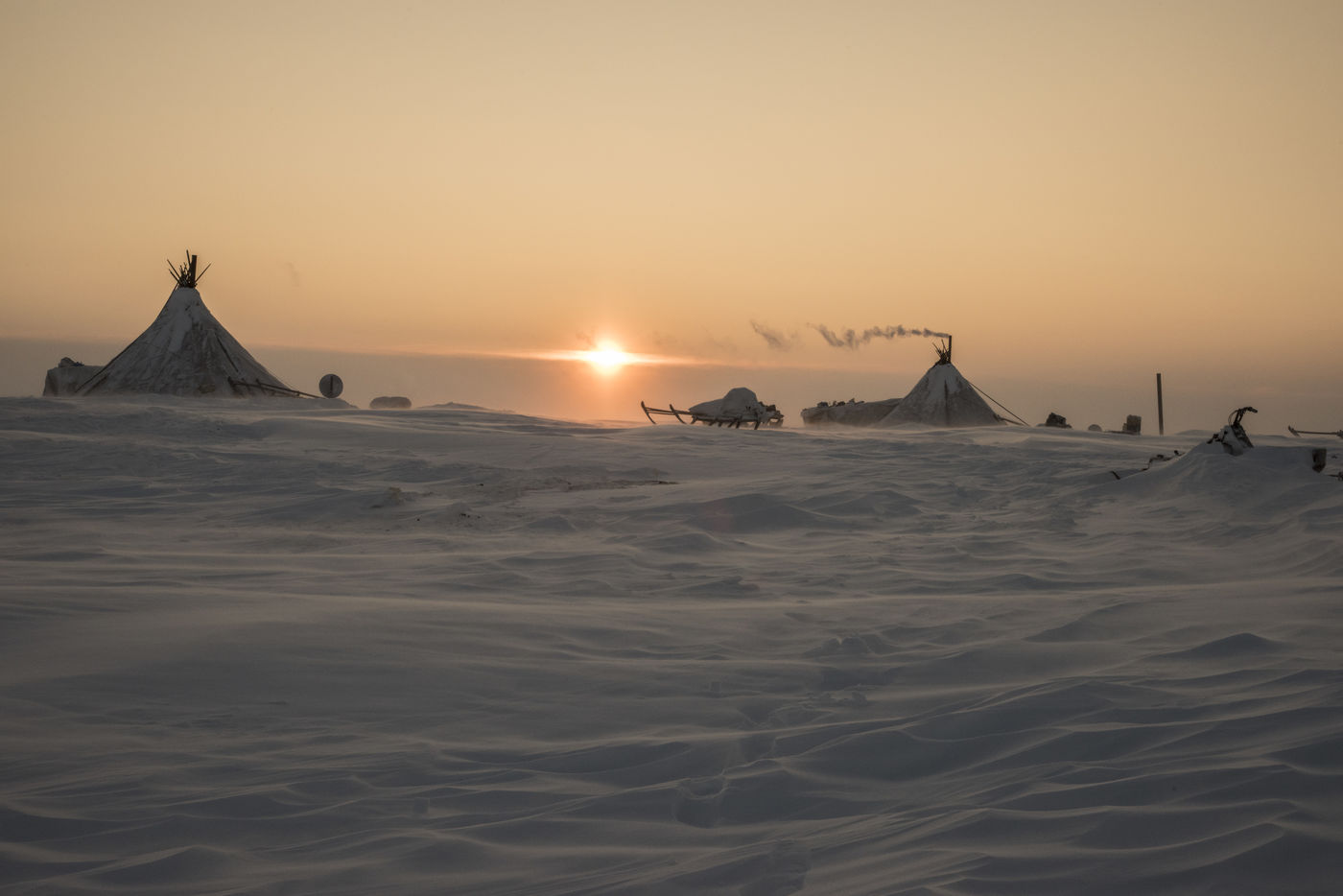 Les Nenets ont une existence à la fois rude et paisible au coffin du Pole Nord. Ils vivent de l'élevage de rennes et se déplacent sur le territoire de la péninsule suivant la transhumance de leurs animaux. Ils parcourent plusieurs milliers de kilomètres par an. La récente exploitation du gaz naturel dans la région crée des obstacles difficilement contournables.