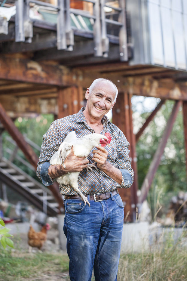 Puy-Saint-André, September 2021. Model eco village of the Hautes-Alpes, Puy-Saint-André prepares its resilience to climate shocks: photovoltaic and solar thermal power plants, insulation of municipal buildings, construction of energy-efficient buildings, installation of a cowman, goat stall and greenhouses to increase food autonomy, collective shuttle on market days, widespread citizen participation.