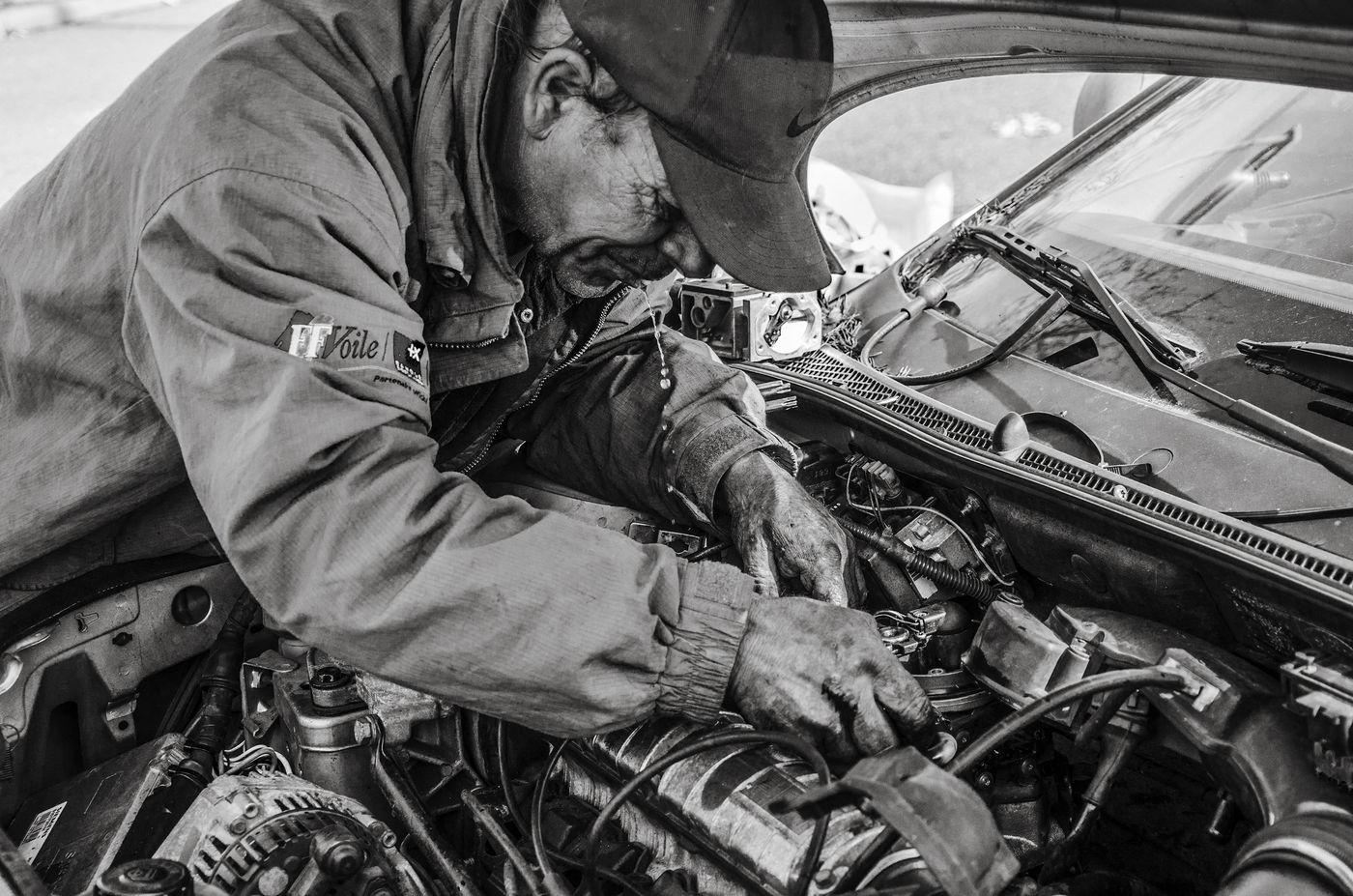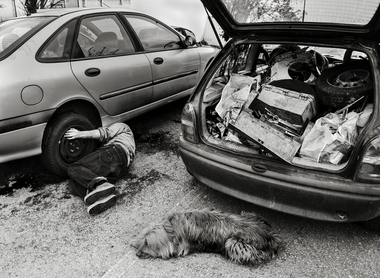 Jean Luc vit à Toulouse depuis plus de quinze ans. Avant, il a fait Paris. Il se définit lui-même comme un SVF : " Sans Voiture Fixe ". Passionné par la mécanique depuis toujours, il vit des réparations qu'on lui confie ici et là, et dort dans ses voitures en parcourant Toulouse. Il dit que c'est un choix de vie, elle ne lui a jamais fait de cadeaux et il a décidé de prendre sa liberté de cette façon. Il est tellement doué que les garagistes du coin l'appellent quand ils sèchent sur une panne. Jean Luc est une figure de la zone artisanale. Je l'ai suivi pendant plusieurs jours sur une période de deux mois.