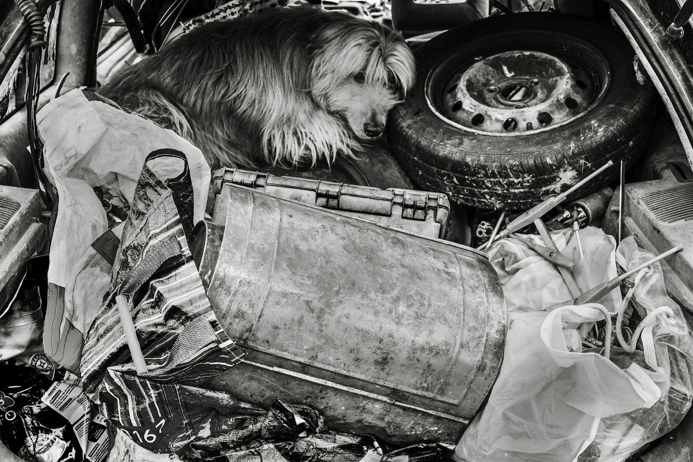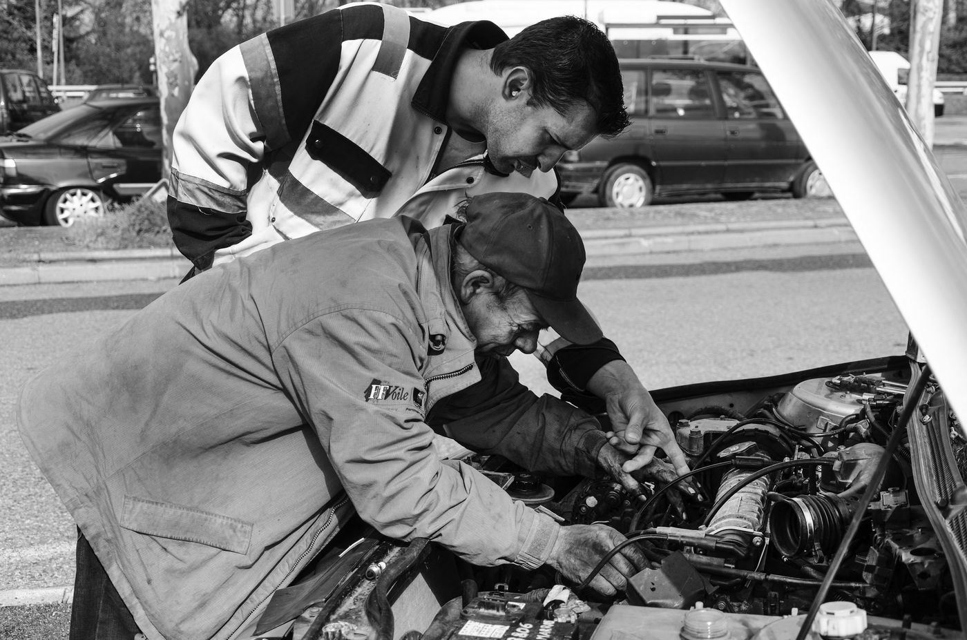 Jean Luc lives in Toulouse for more than fifteen years. Before, he tried Paris. He defines himself as a SVF: " Sans Voiture Fixe " in french (without a regular car/home). Fascinated by mechanics for a long time, he lives thanks to some repairs people ask him to do here and there, and sleeps in his cars, traveling around Toulouse. He says that it is a life choice, because life never did him any favours so he decided to take his freedom by this way. He is so talented that the garage owners in town call him when they are stumped in a breakdown. Jean Luc is famous at the industrial park. I followed him during several days over a period of two months.
