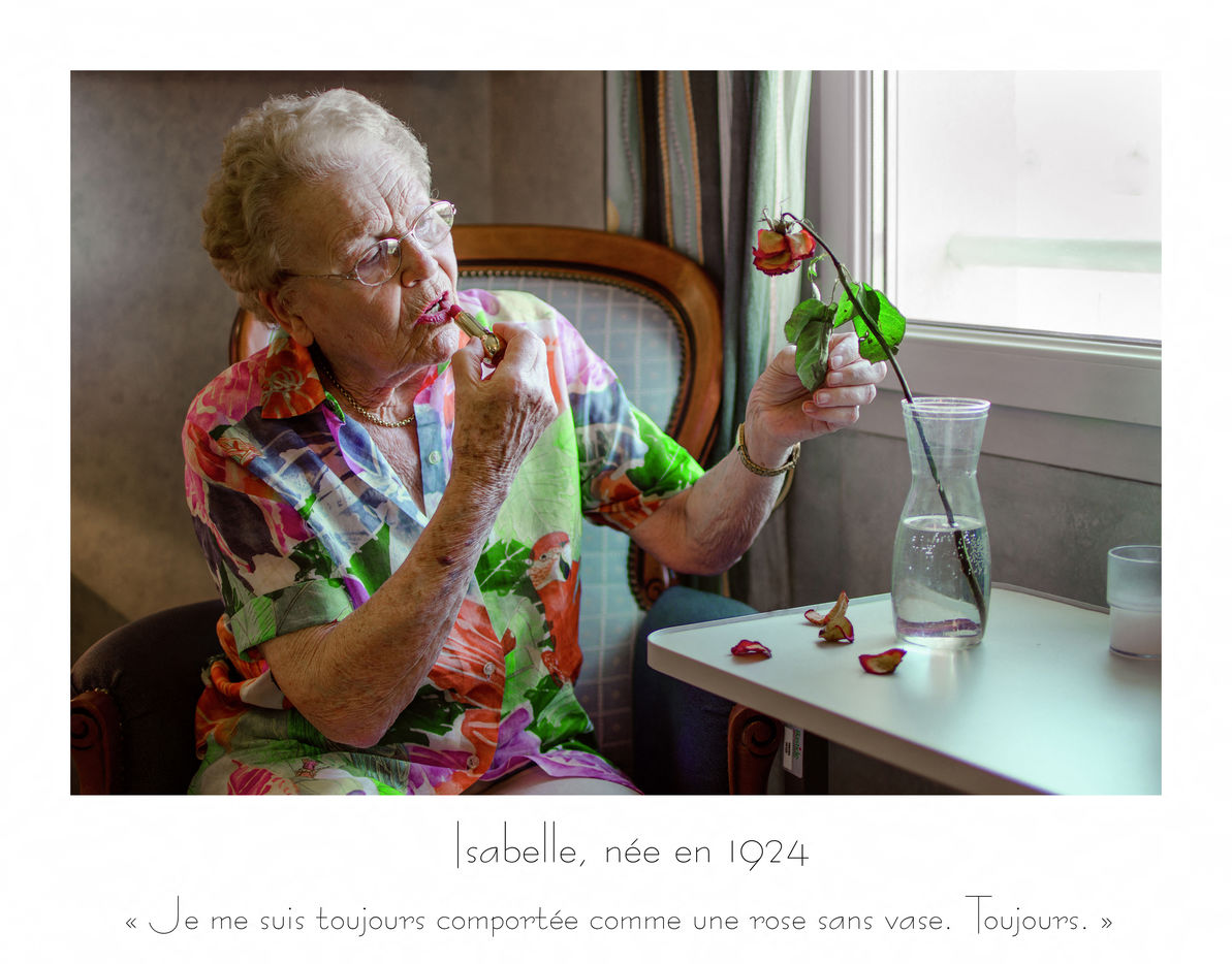 I wanted each of these portraits, halfway between a staging and a documentary look, to emanate a truth of the moment that would come as close as possible to the woman I had in front of me, to her way of apprehending her old age, and of composing with her femininity despite everything.