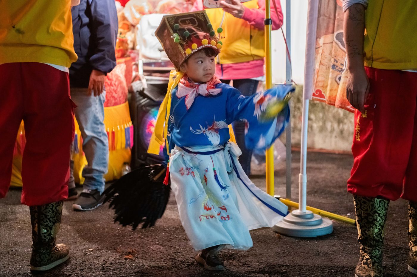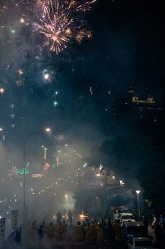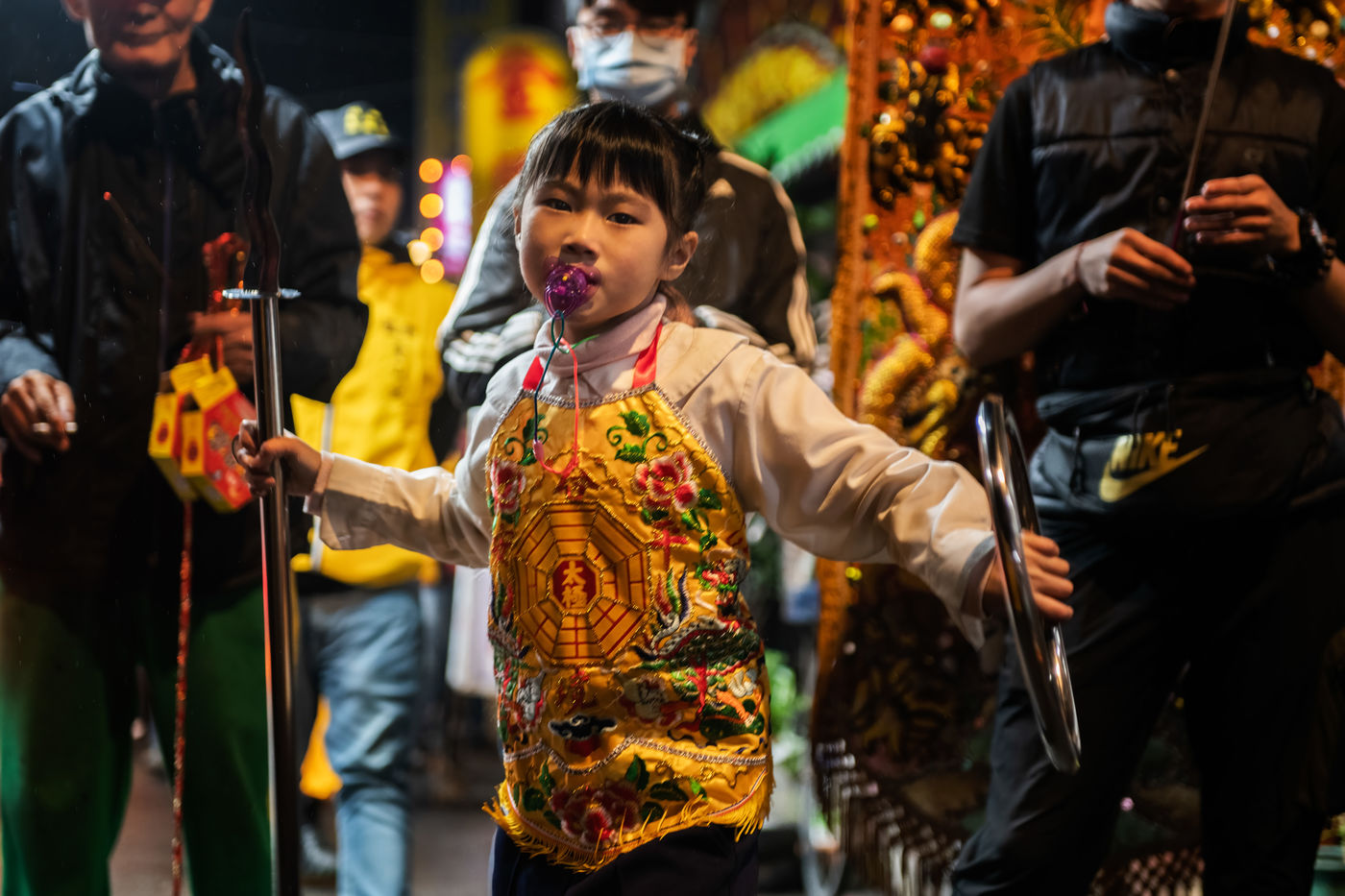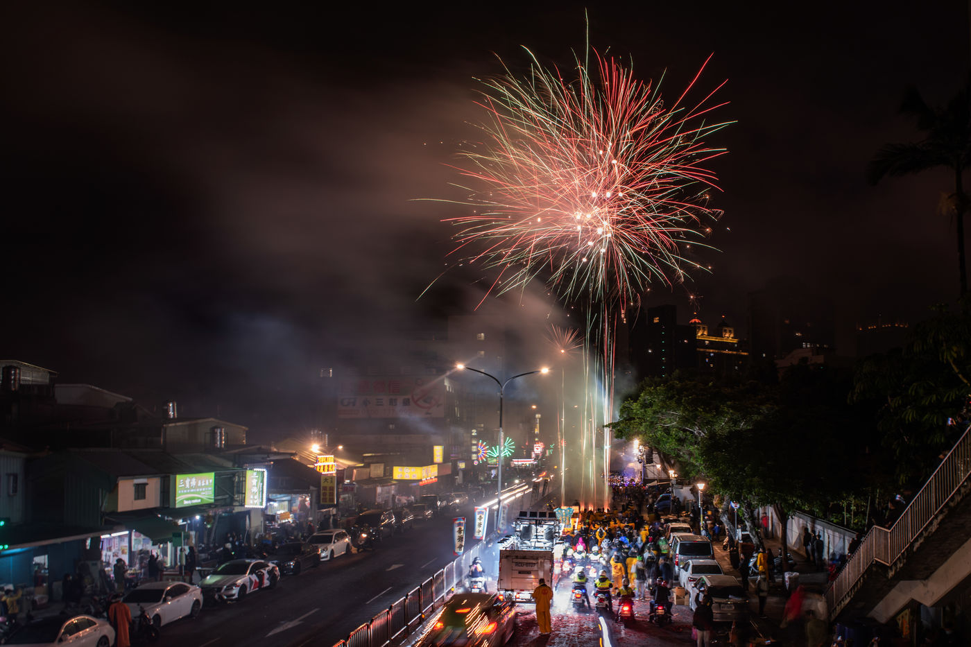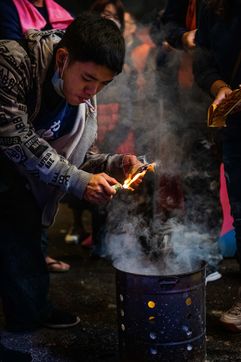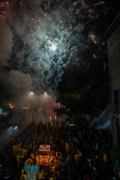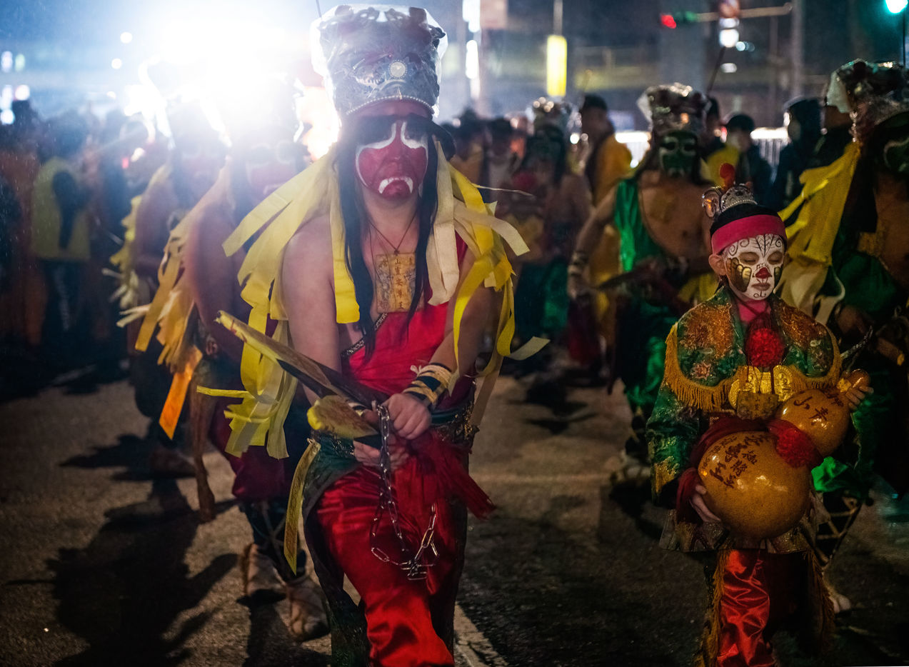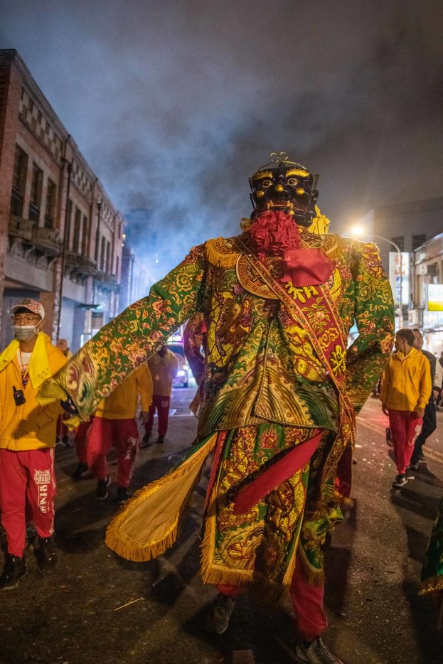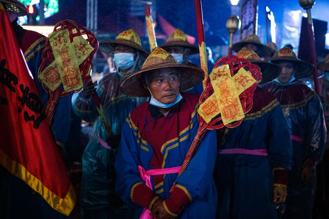 King Qinshan is one of the biggest Taiwanese Taoist festivals. It occured this weekend, far from any concern related to the Covid which was held there in an exemplary way. It is also called the "Great Ritual Festival of King Qingshan", in Taipei. King Shangong's palace is a magical temple dedicated to the main deity, "King Qinshan", the god who eliminates plagues and disasters for the people. Legend has it that King Qinshan sent his generals on a night journey to inspect the place, reward good deeds and punish evil, and catch the spirits that make people suffer to purify them. In ancient times, the atmosphere of the wandering was solemn and calm, and people walked quietly at night to minimize noise and clamor. Nowadays, the unexpected visits have gradually become more lively, reaching a climax this year with more fireworks and firecrackers than ever before.