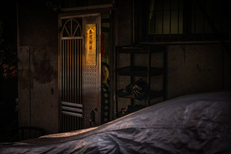 My photography has always been influenced by cinema and I feel more than ever in this series that my imagination is carried by Wong Kar-wai, Hou Hsiao-Hsien or Shohei Imamura ... It is then, surrounded by the light of temples, neon lights and lanterns, that the Taiwanese become the characters of a film. A film entitled ?Between dogs and wolves?.
