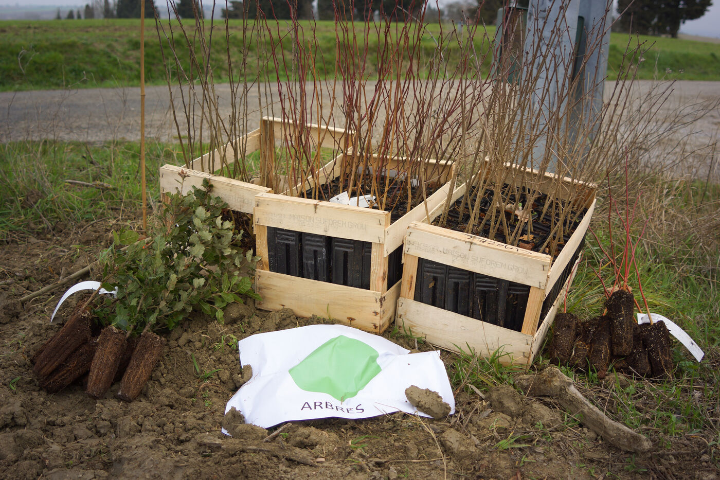A group project in Montferrand, Aude, to plant a 300-metre hedge on Guillaume Clauzel's farm. With the support of the Aude Chamber of Agriculture, the Forevert association and students from the Charles Cross vocational school in Carcassonne.